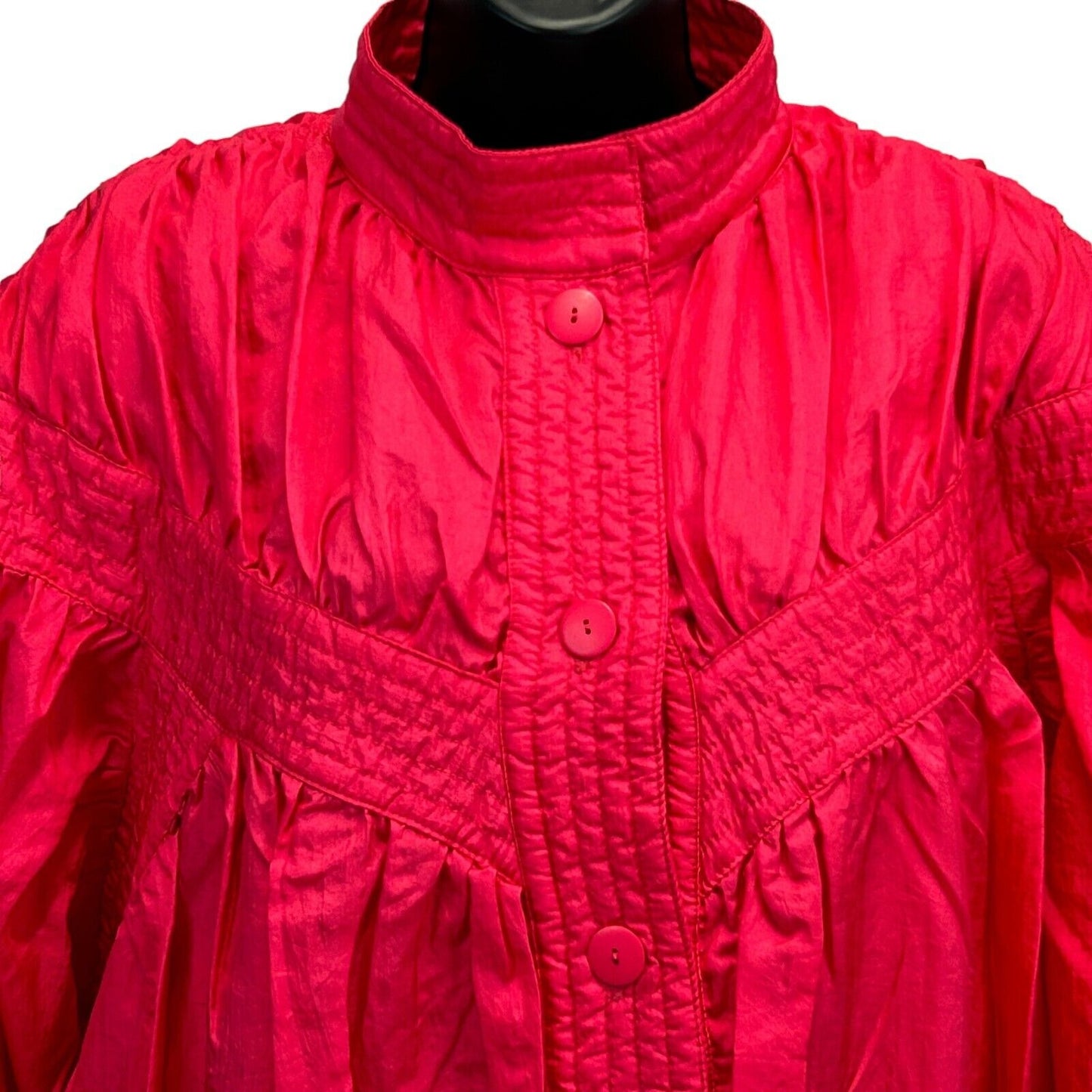 Abraxas Womens Vintage 80s Jacket Large Puffy Quilted Pleated Shoulder Pads Windbreaker Red Fluorescent Neon