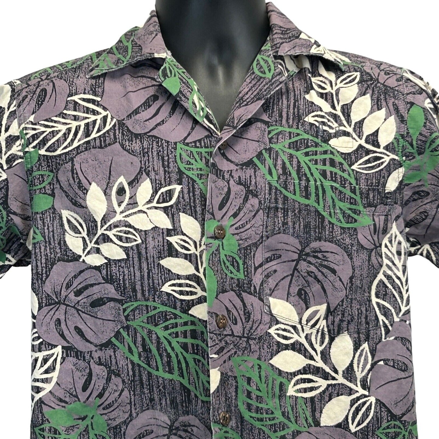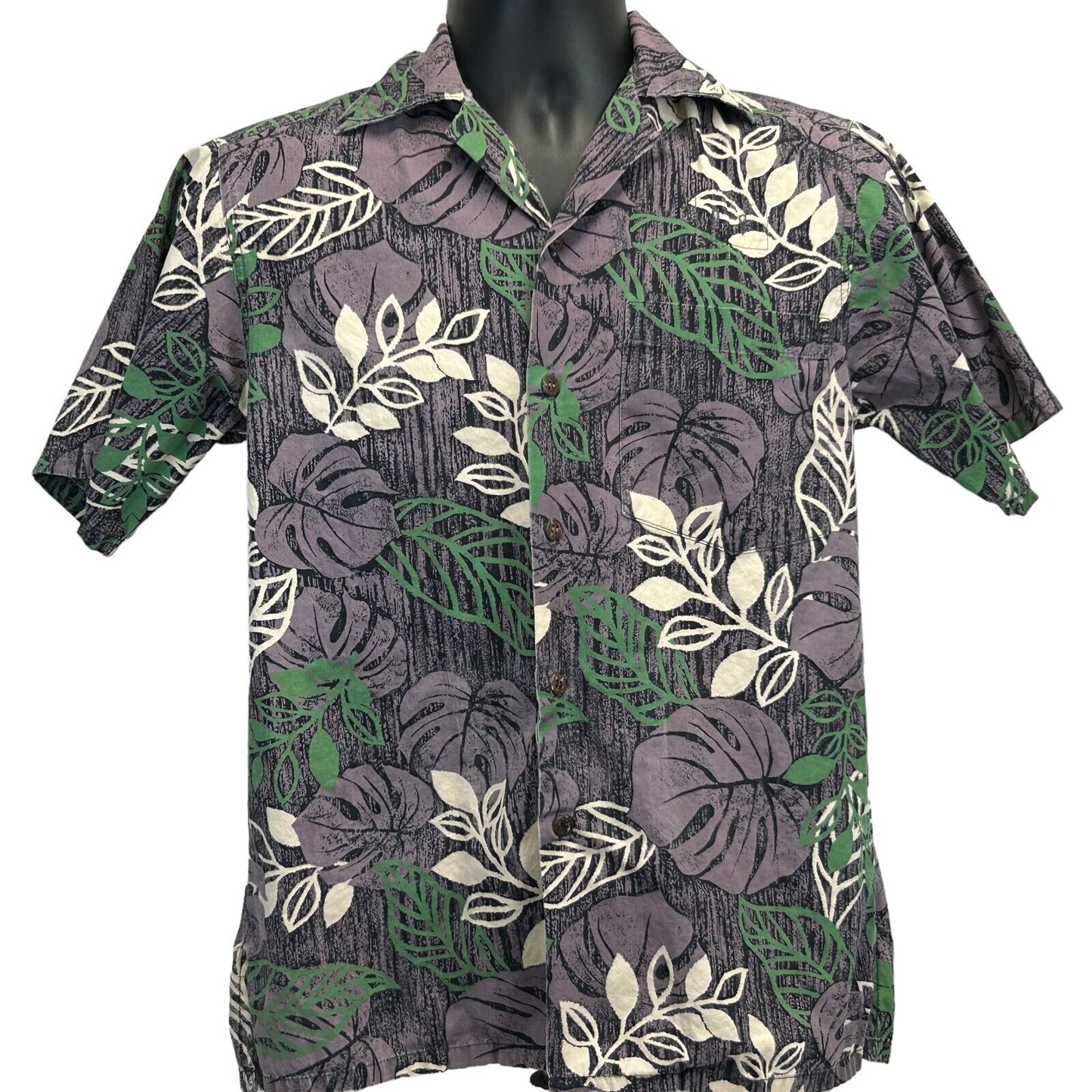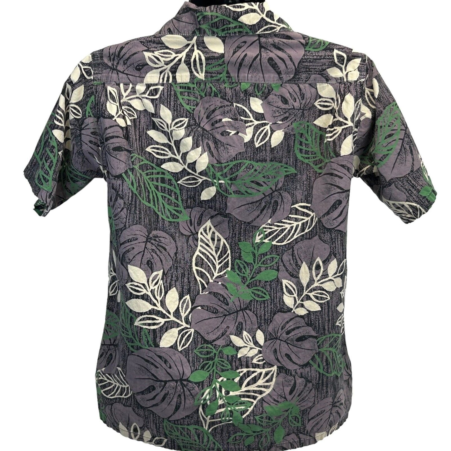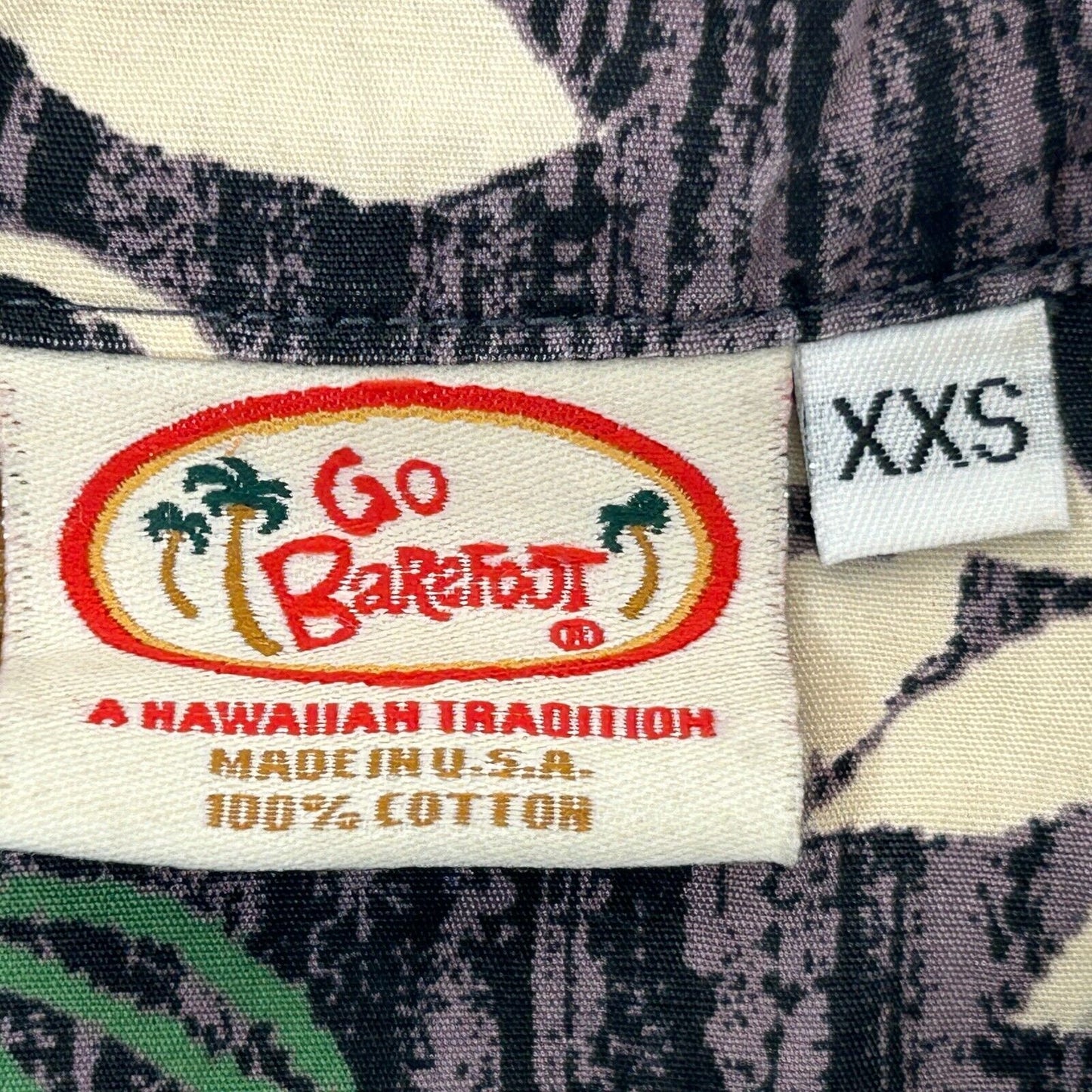 Go Barefoot Vintage 90s Hawaiian Camp Button Front Shirt XXS Floral Flowers Mens Gray Made In USA