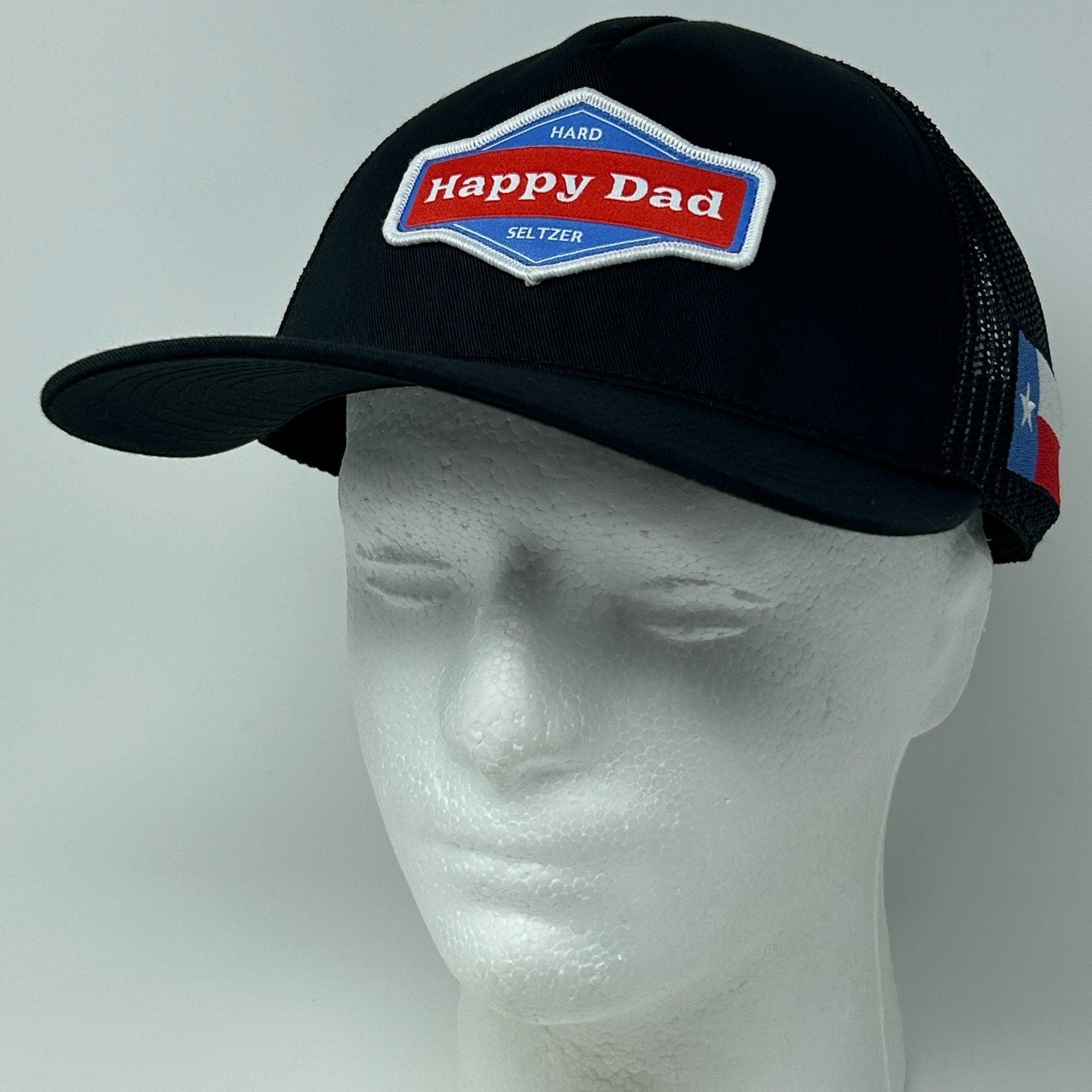 Happy Dad Hard Seltzer Texas Flag Trucker Hat Baseball Cap Nelk Boys Mesh Snapback 5 Panel A-Frame Black