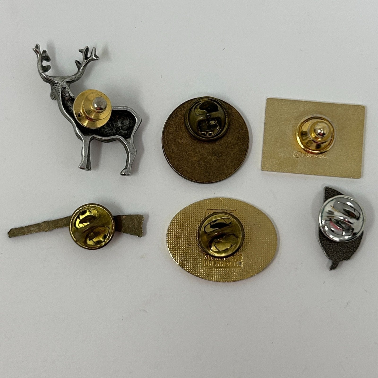 Lot of 6 Vintage Hunting Shooting Hat Lapel Pins Pinback Buttons Elk Deer Hunter