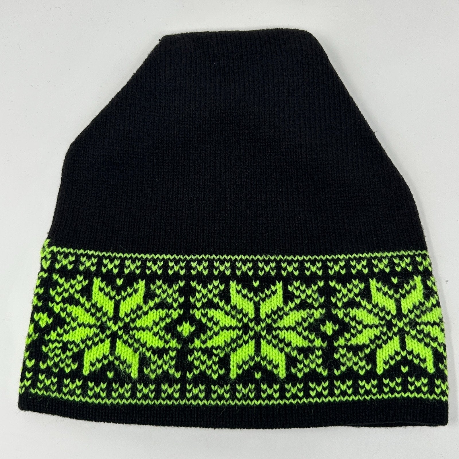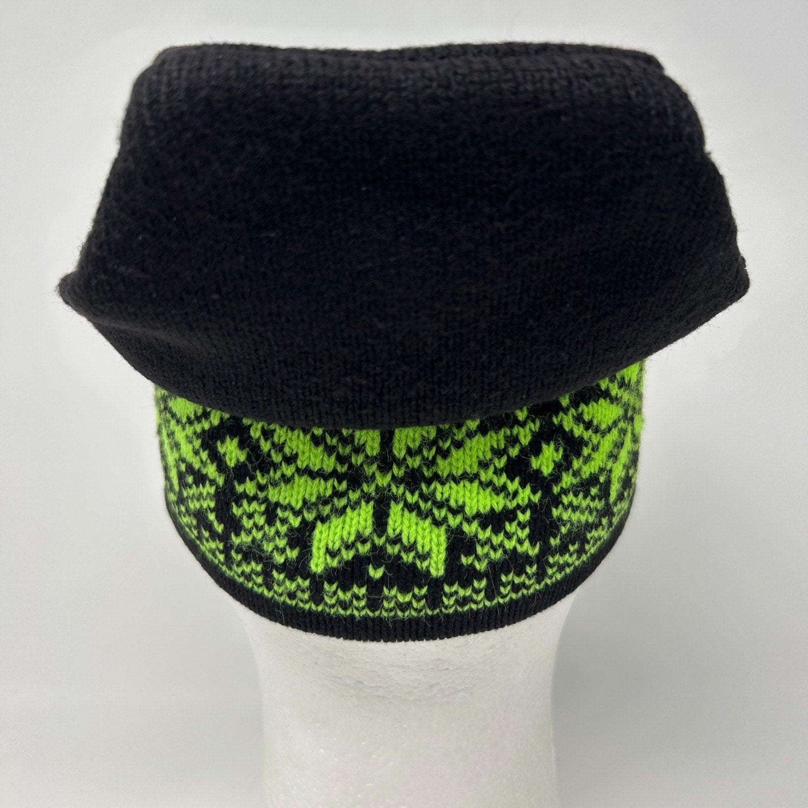 Snowflake Beanie Winter Hat Toque Ski Skiing Skier Nordic Fair Isle Black
