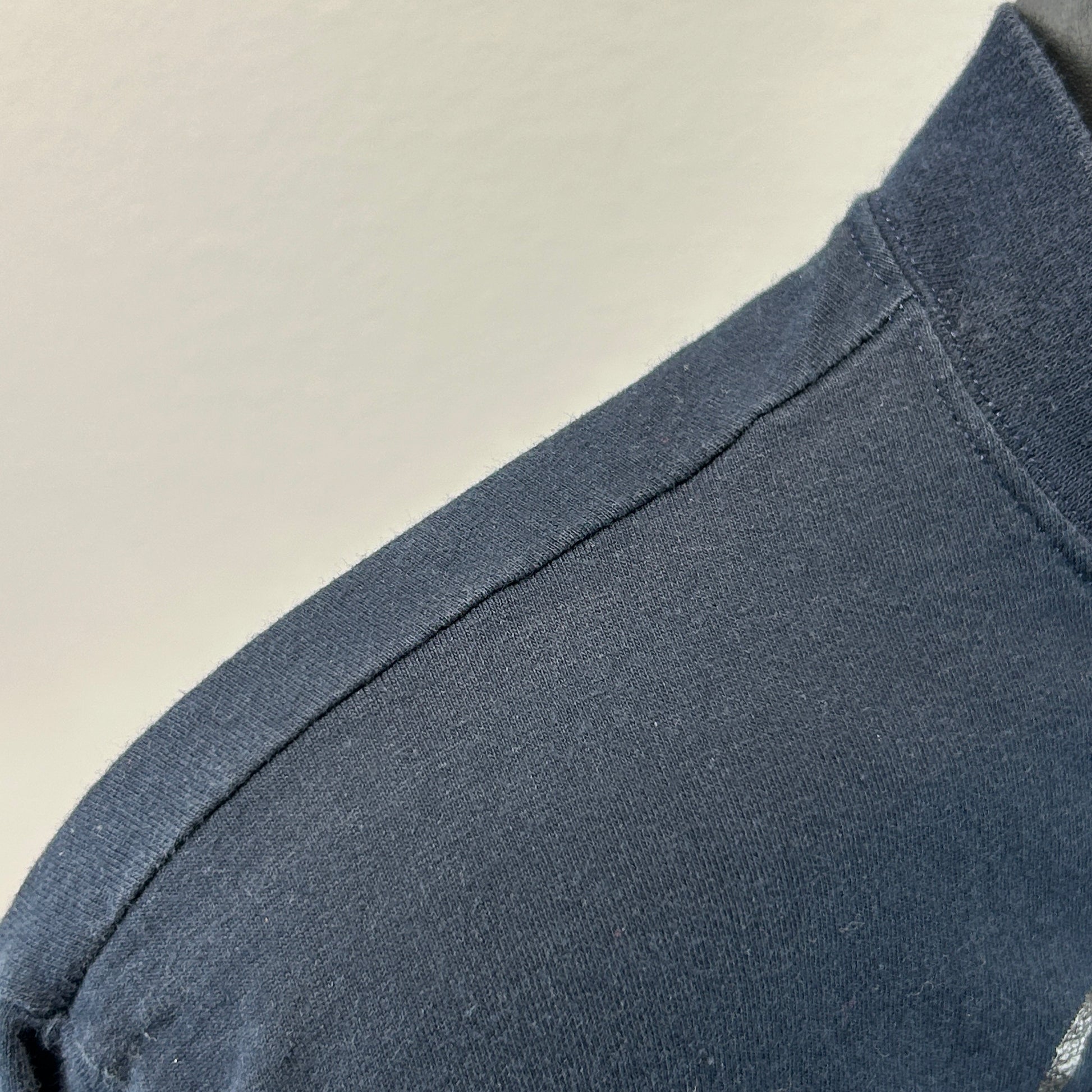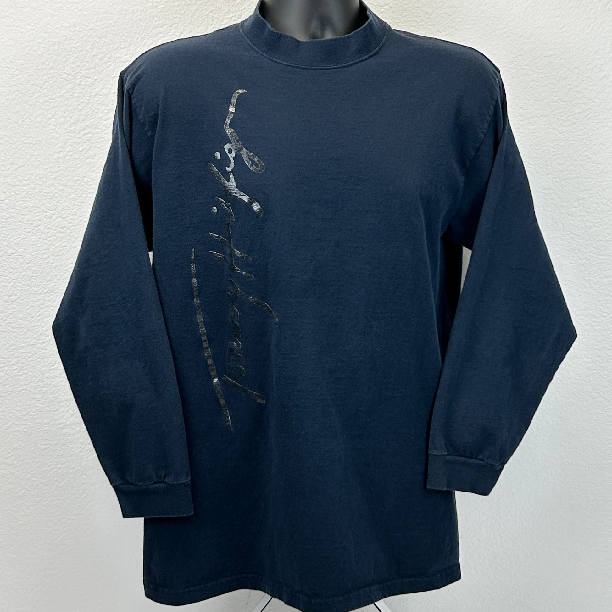 Vintage 90s Tommy Hilfiger Jeans T Shirt Flag Logo Spell Out Long Sleeve Navy Blue Made In USA Graphic Tee