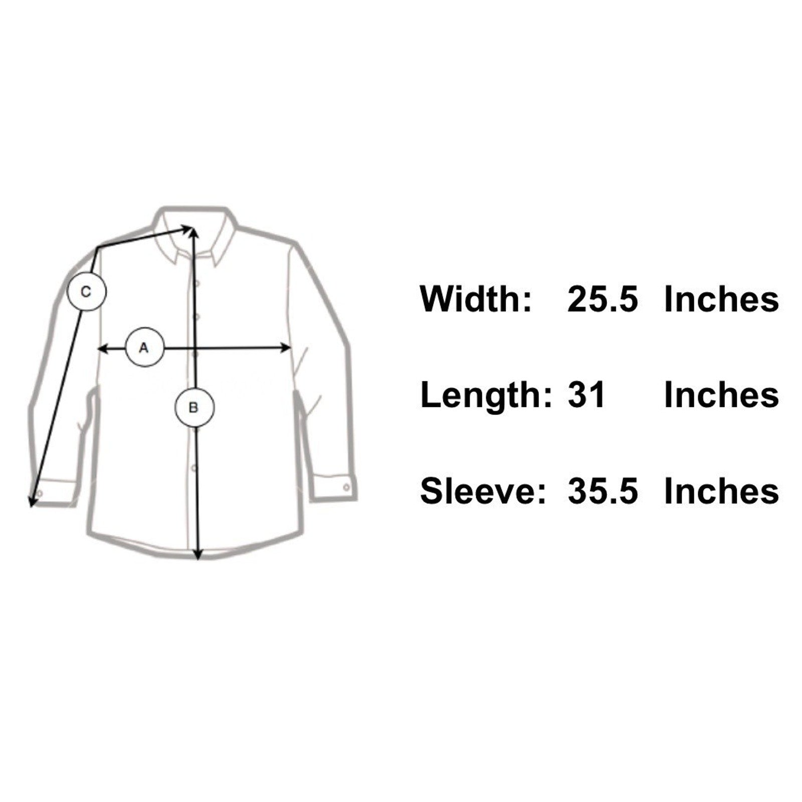Sleeve Length 35.5" - From the center of the back of the neck to the shoulder to the bottom of the sleeve