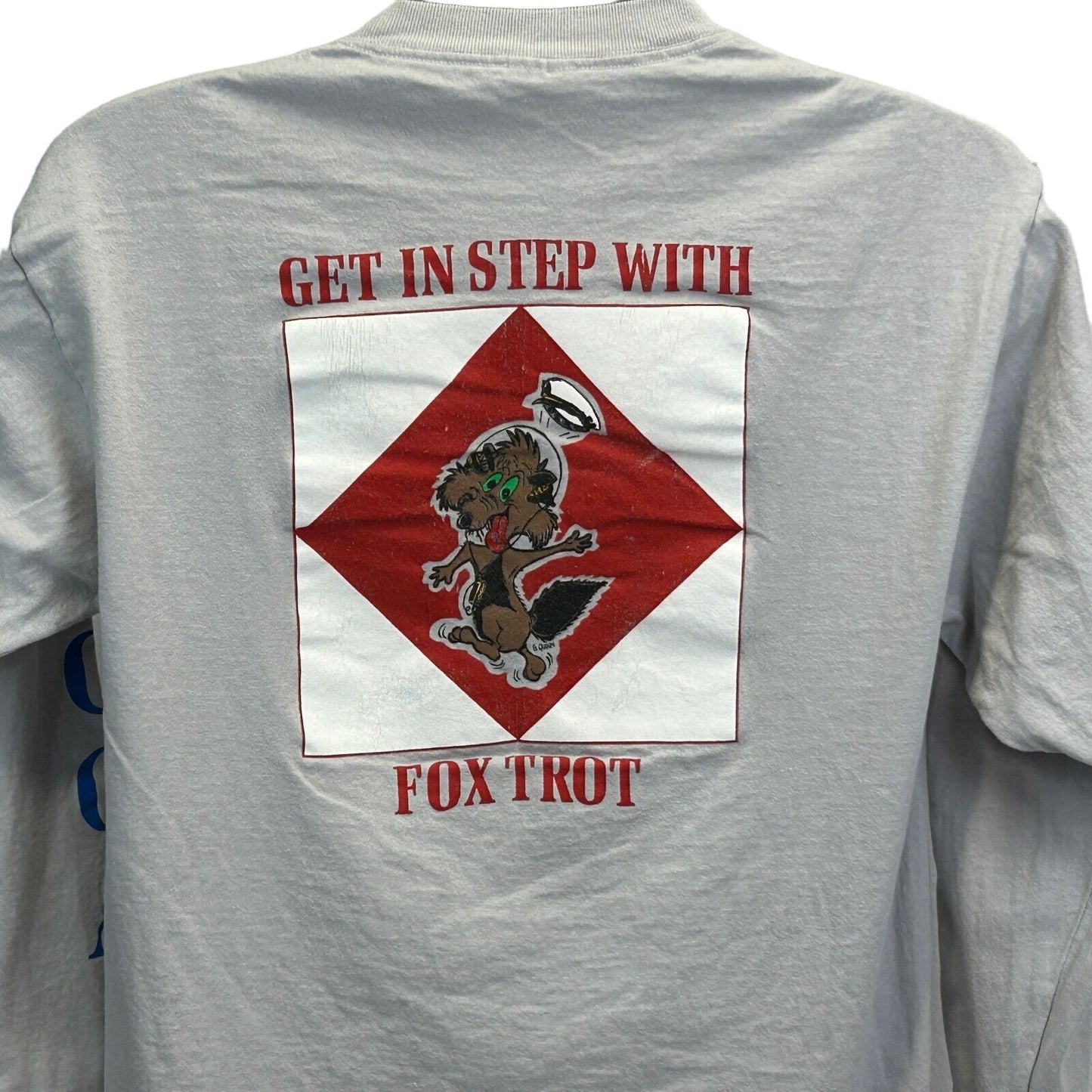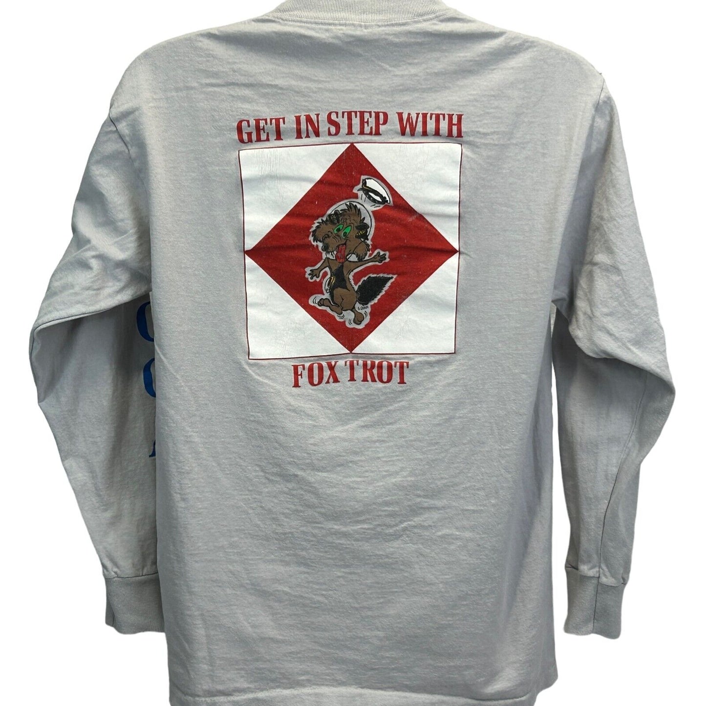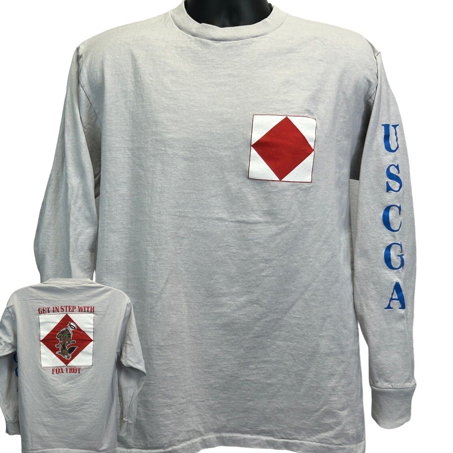 US Coast Guard Academy Foxtrot Vintage 80s T Shirt Large USCGA Mens Gray Long Sleeve Miller Single Stitch Made In USA Graphic Tee