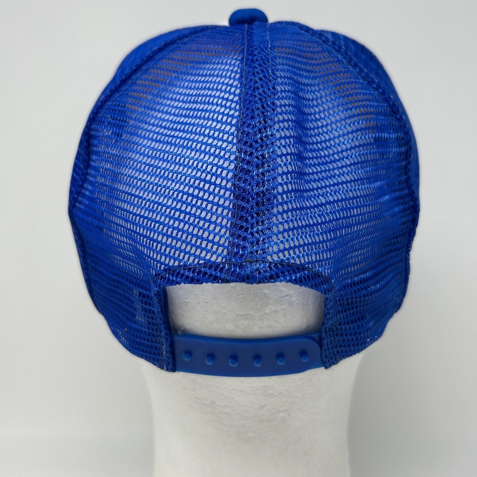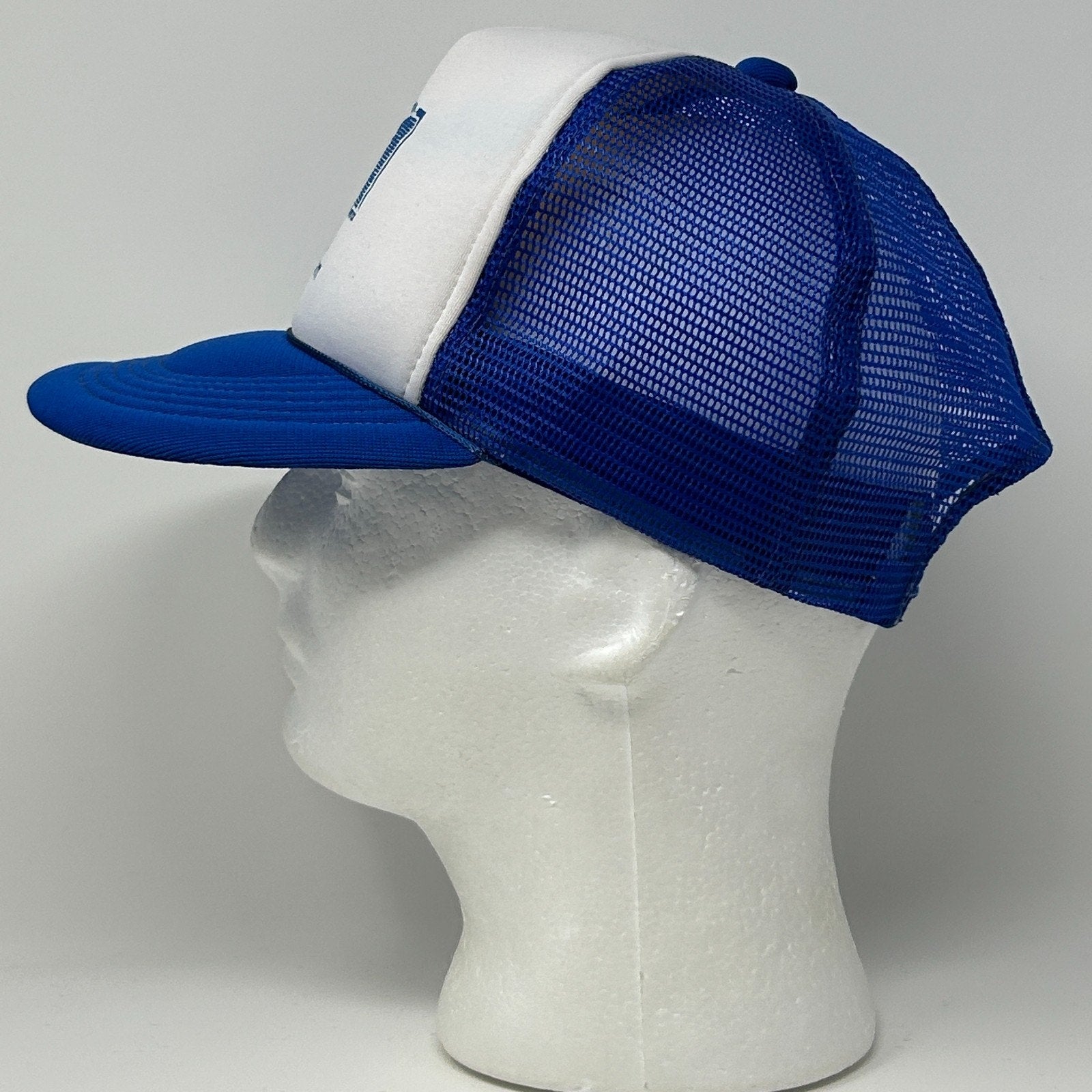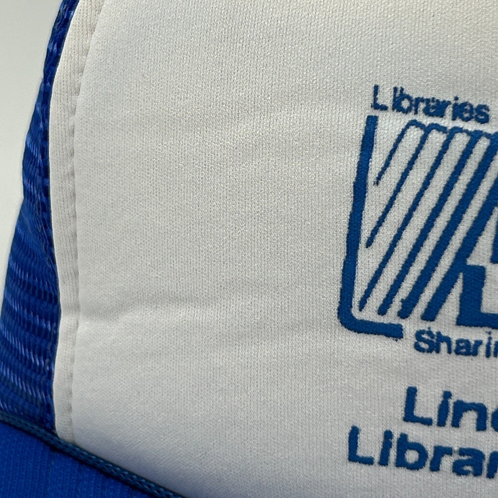Vintage 80s Lincoln Trail Libraries System Trucker Hat Baseball Cap Illinois Heartland Library System IHLS Reading Books Reader Foam Front Mesh Snapback Blue 5 Panel A-Frame