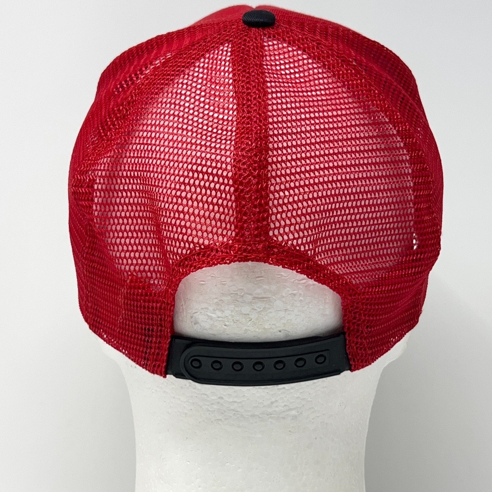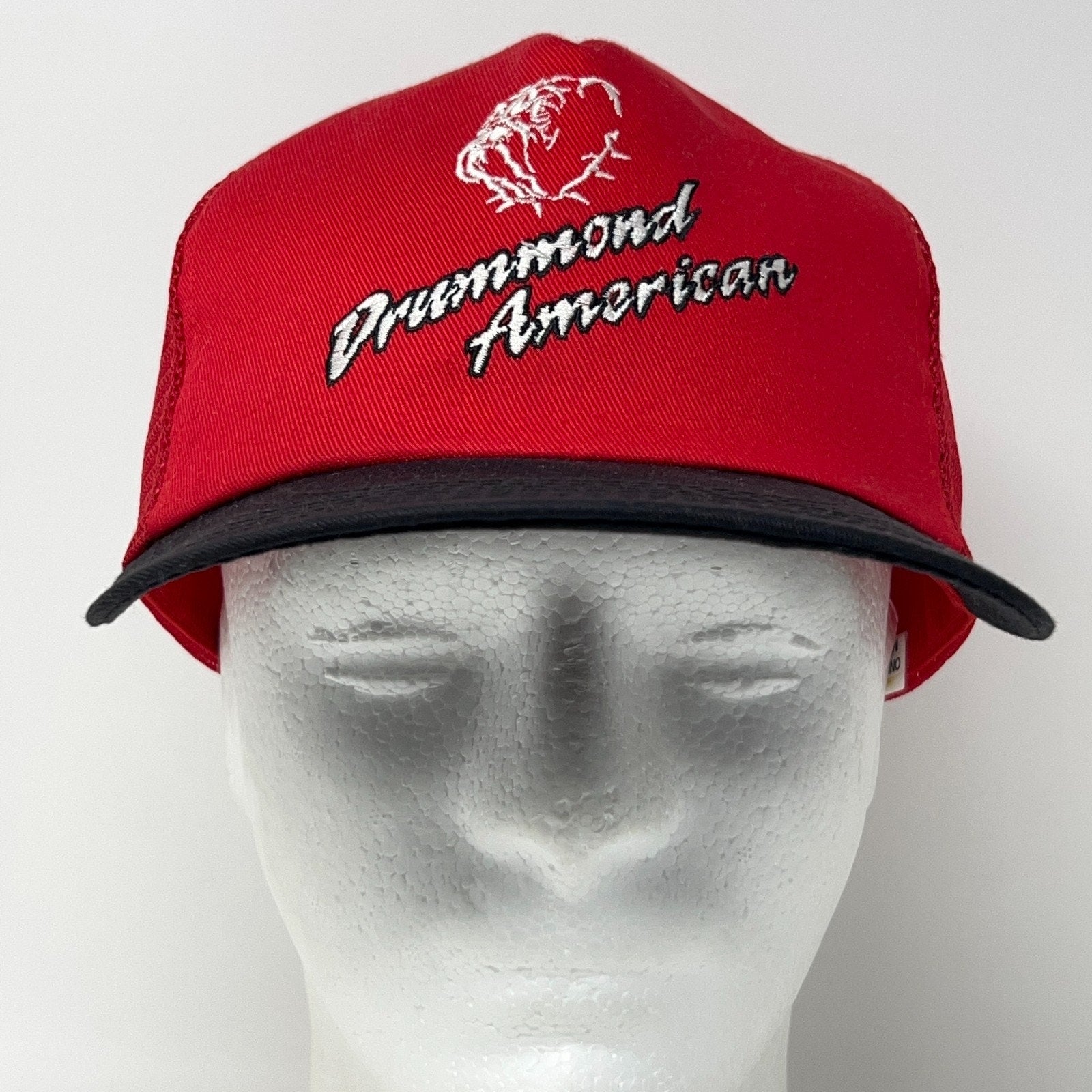 Vintage 90s Drummond American Trucker Hat Baseball Cap 5 Panel Mesh Snapback Red