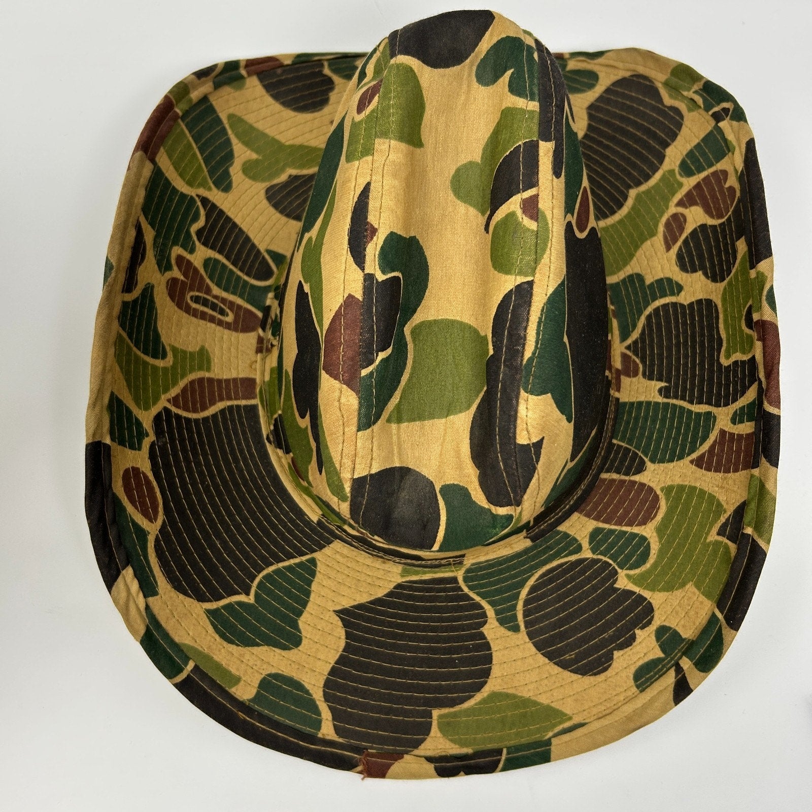 Vintage Camouflage Cowboy Western Hat Camo Army Military Beige S Small 55 cm