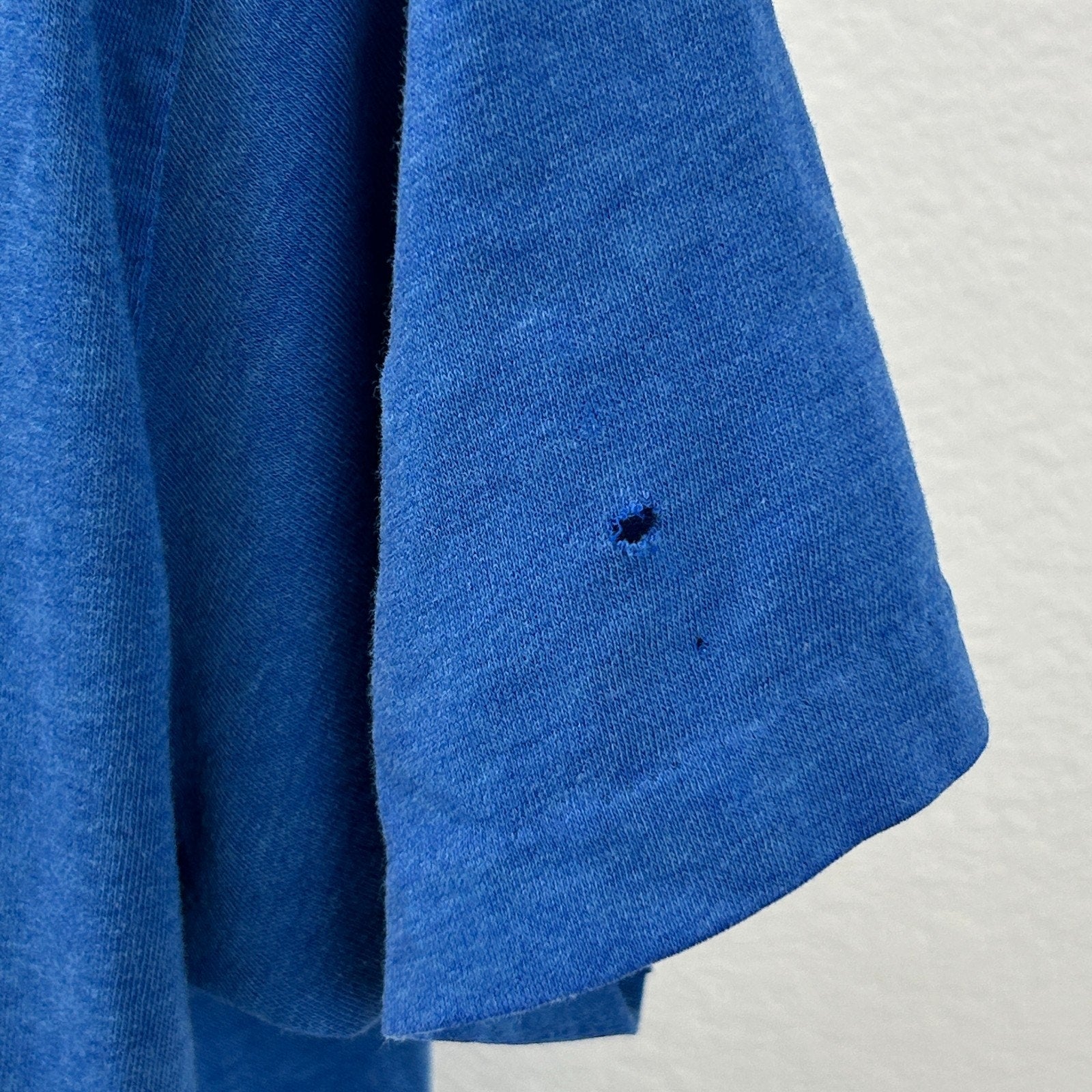 Vintage Distressed McIntyre Madness T Shirt Mens XL X-Large Blue 80s J.S. Browns R.Tee Sports Single Stitch Made In USA Graphic Tee