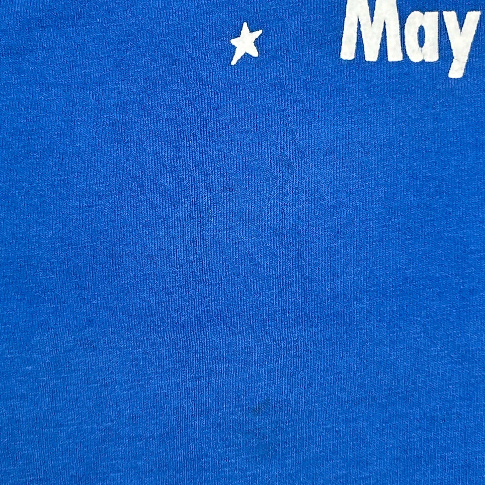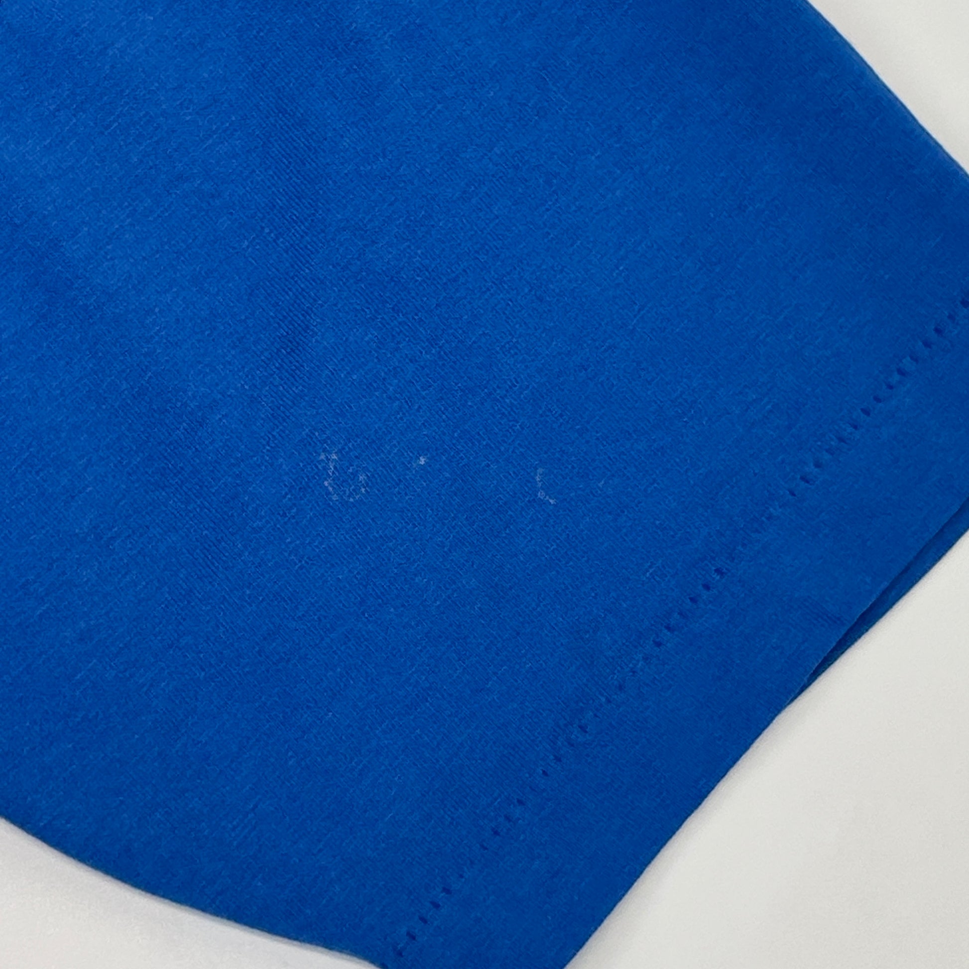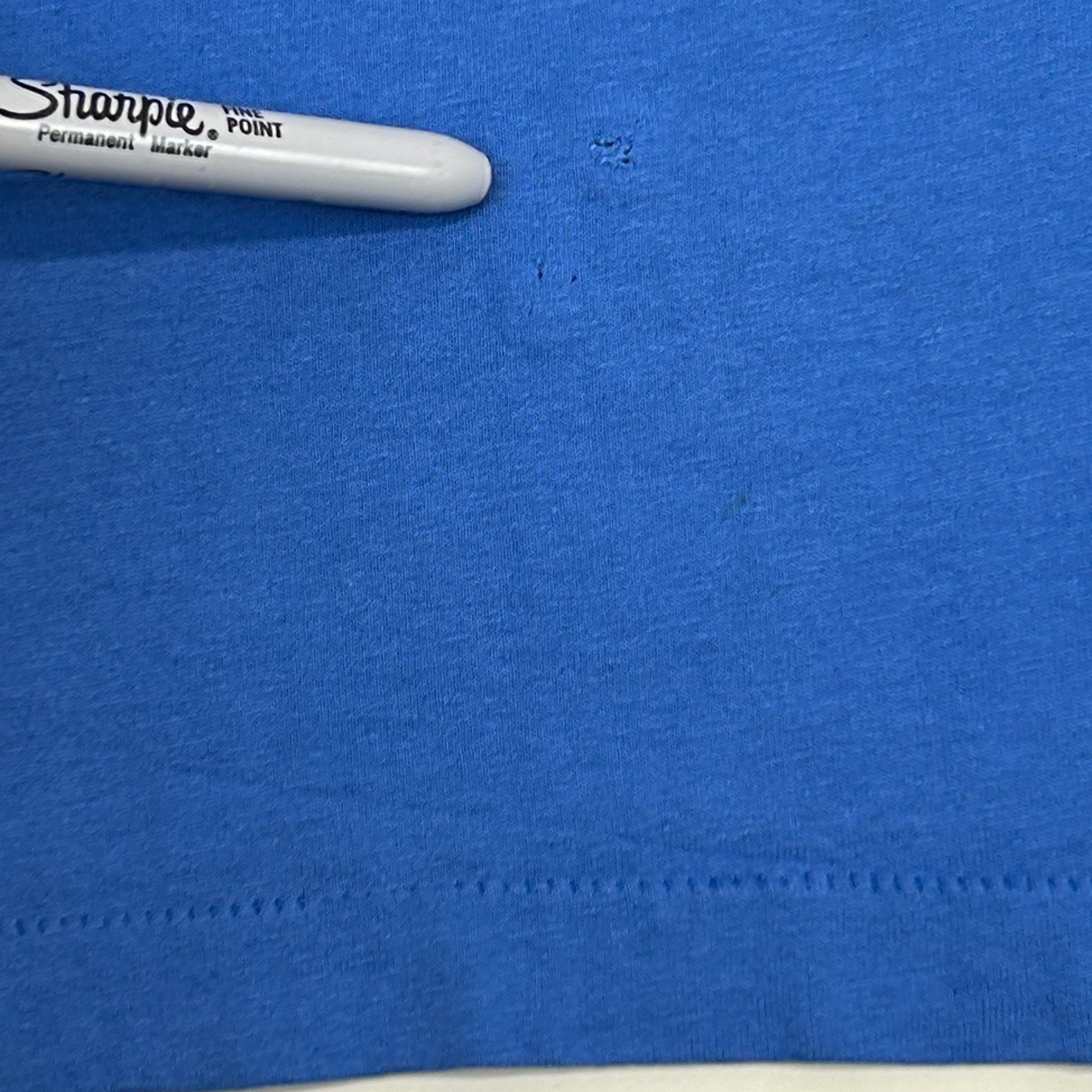 Has some spots, image cracking/fading, and a few small holes on the bottom front have been patched from the inside. The holes should not spread further and skin will not show through. No other flaws noticed. Tag is a Large but I feel it measures more similar to a modern Medium. Check measurements to ensure fit. See photos.
