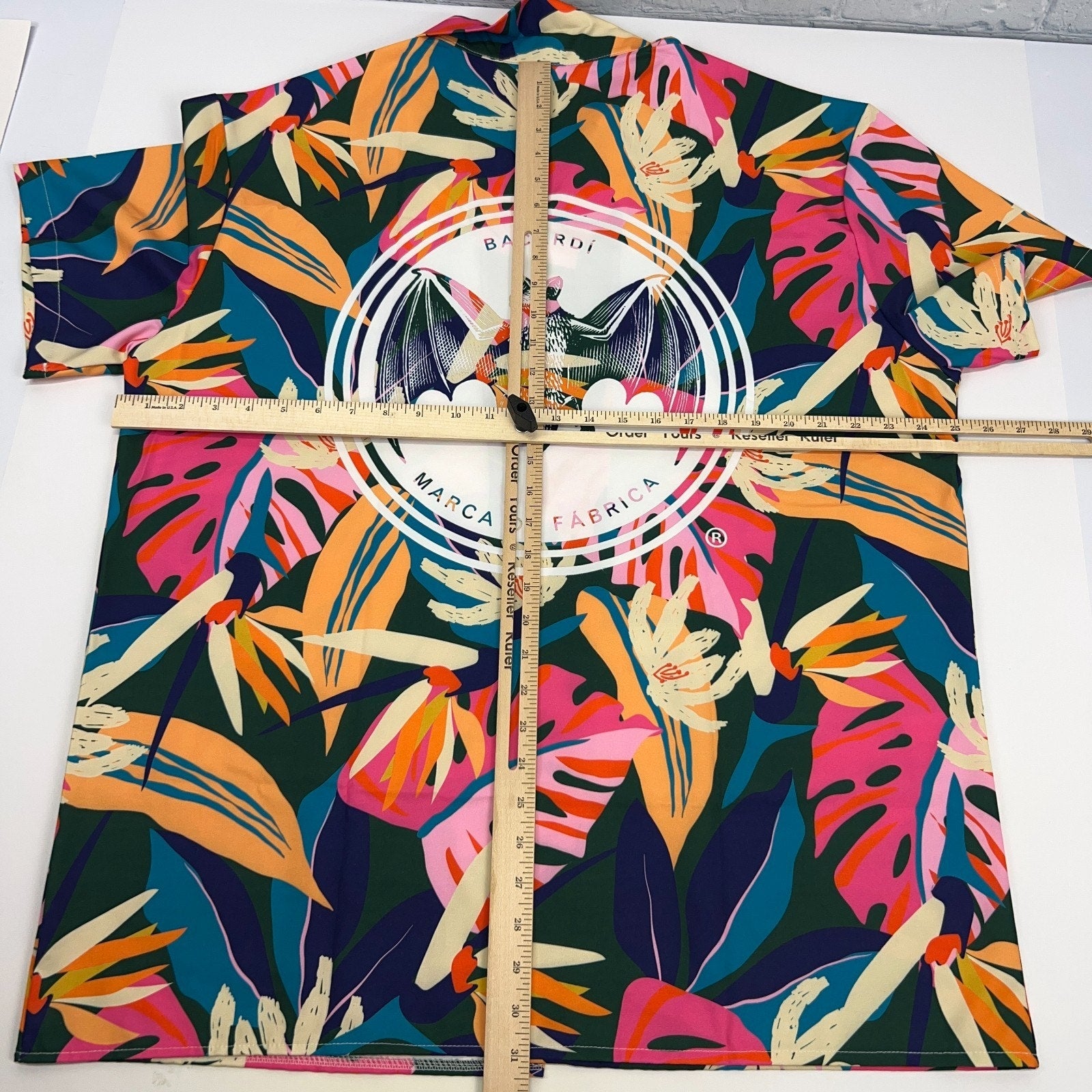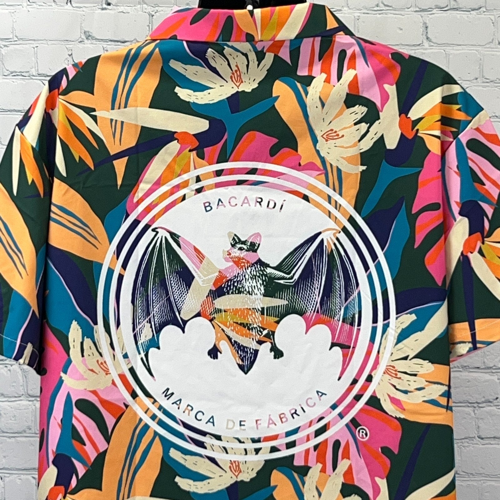 Bacardi Rum Hawaiian Camp Shirt Green Bat Logo Alcoholic Beverage Liquor Short Sleeve Button Up Button Down Button Front Mens L Large