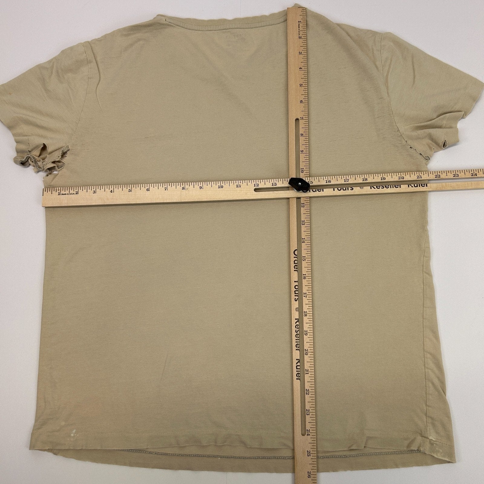 Distressed Polo Ralph Lauren T Shirt Mens M Medium Beige V Neck Short Sleeve Tee