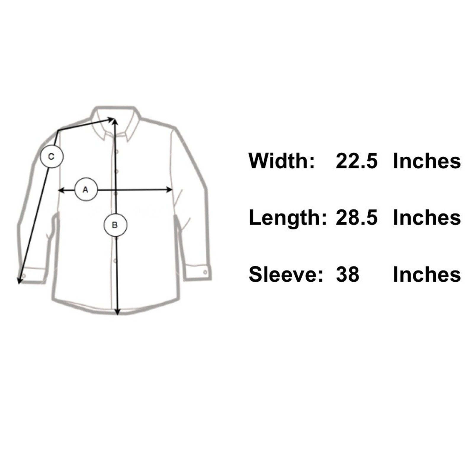 Sleeve Length 38" - From the center of the back of the neck to the shoulder to the bottom of the sleeve