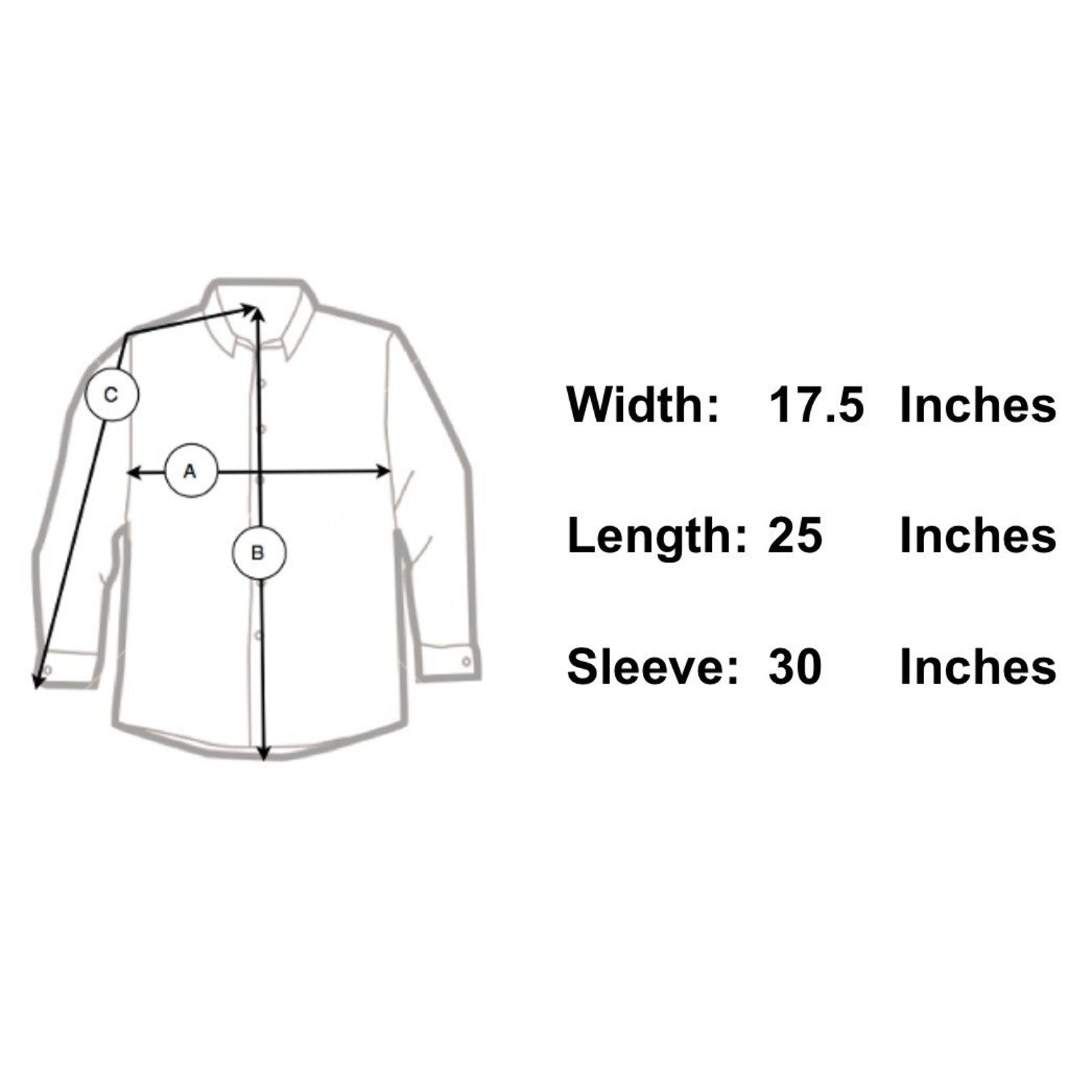 Sleeve Length 30" - From the center of the back of the neck to the shoulder to the bottom of the sleeve