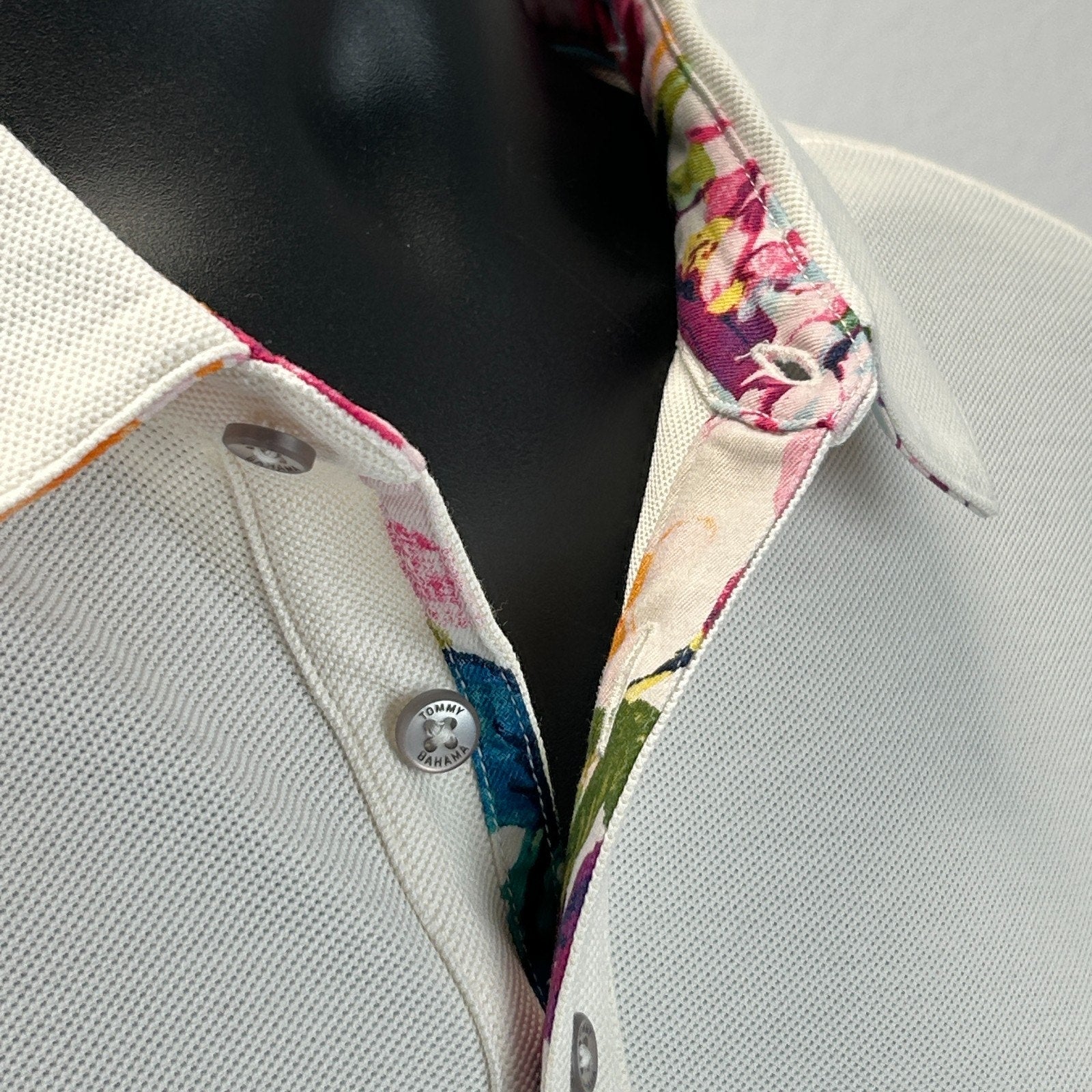 Tommy Bahama Five O'Clock IslandZone Polo Shirt Garden of Hope and Courage Naples Florida Short Sleeve Ivory Vintage White Mens 2XL XXL
