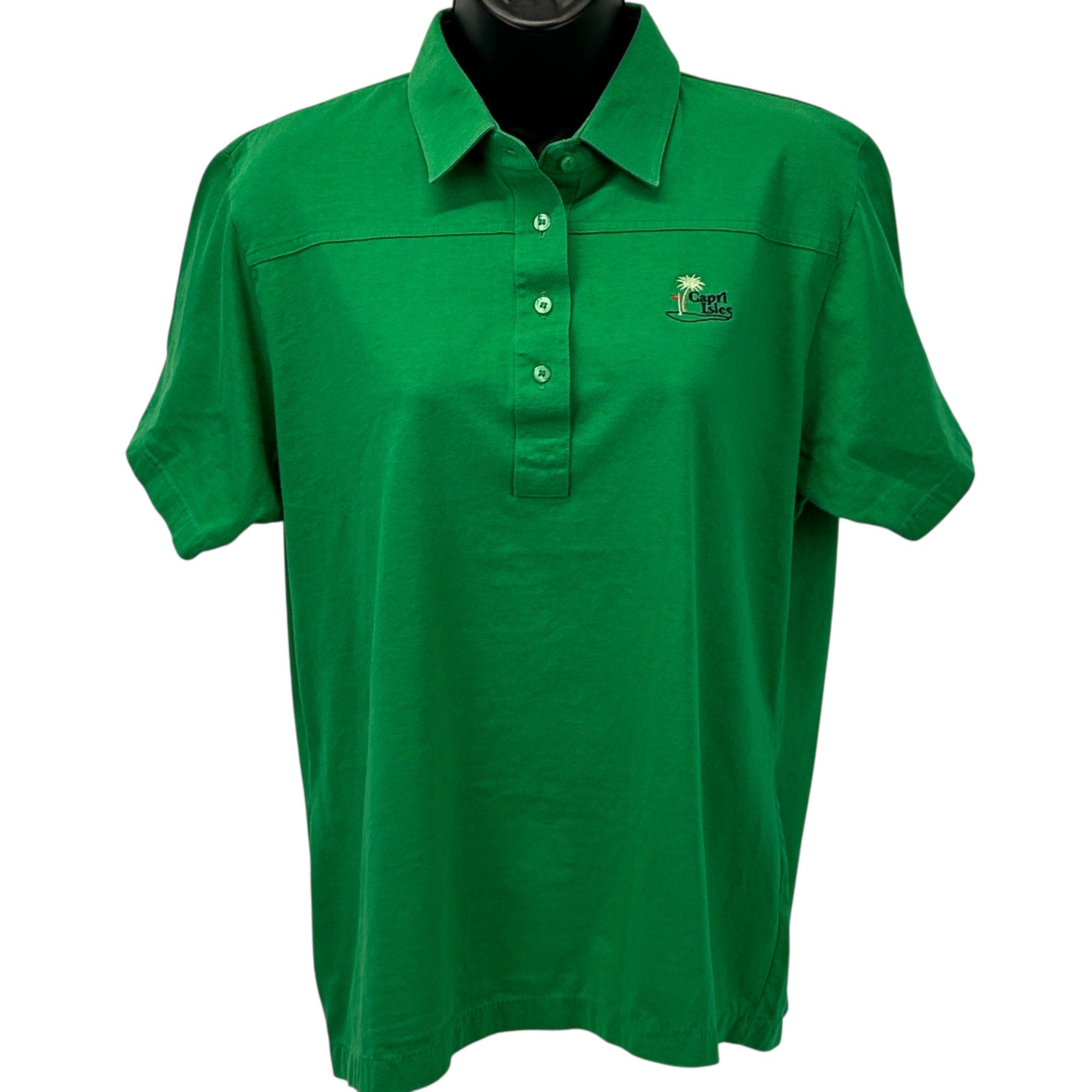Vintage 80s Capri Isles Golf Club Womens Polo Shirt Venice Florida Green L Large