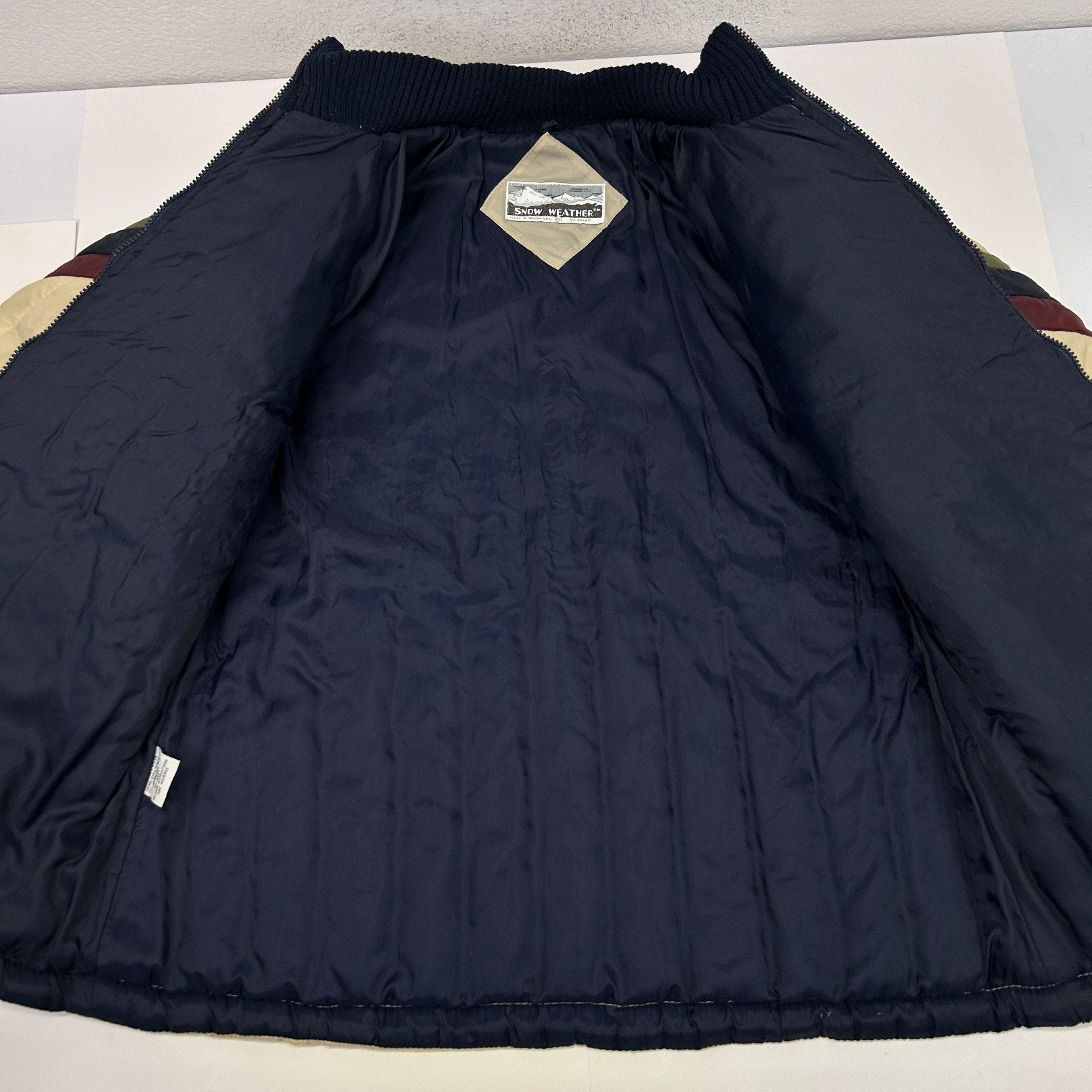 Vintage 80s Snow Weather Puffer Ski Jacket Skier Skiing Snowboarding Snowboarder Beige Womens 20 1/2