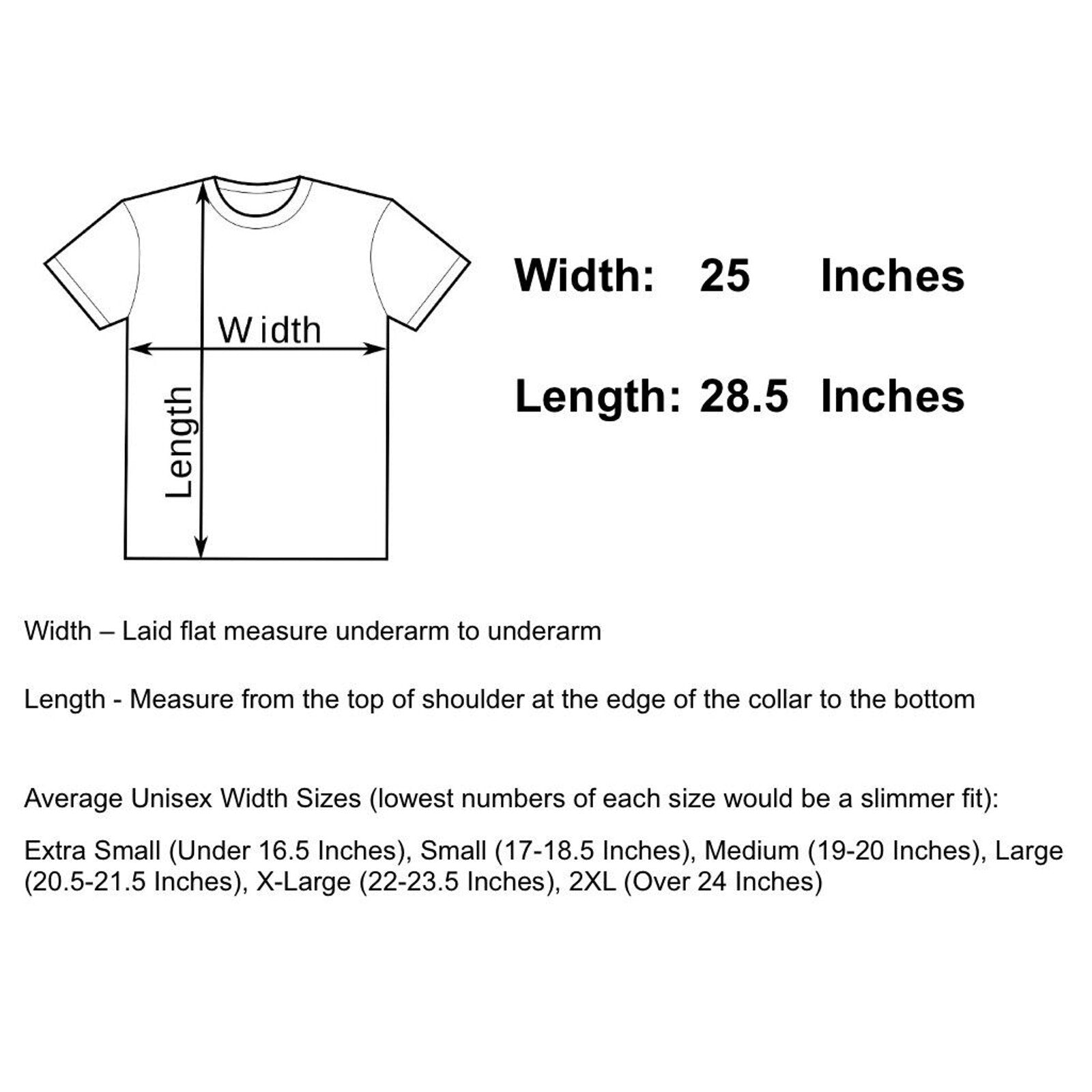 Length 28.5" - Measure from top of shoulder, at the edge of collar, to the bottom of the shirt