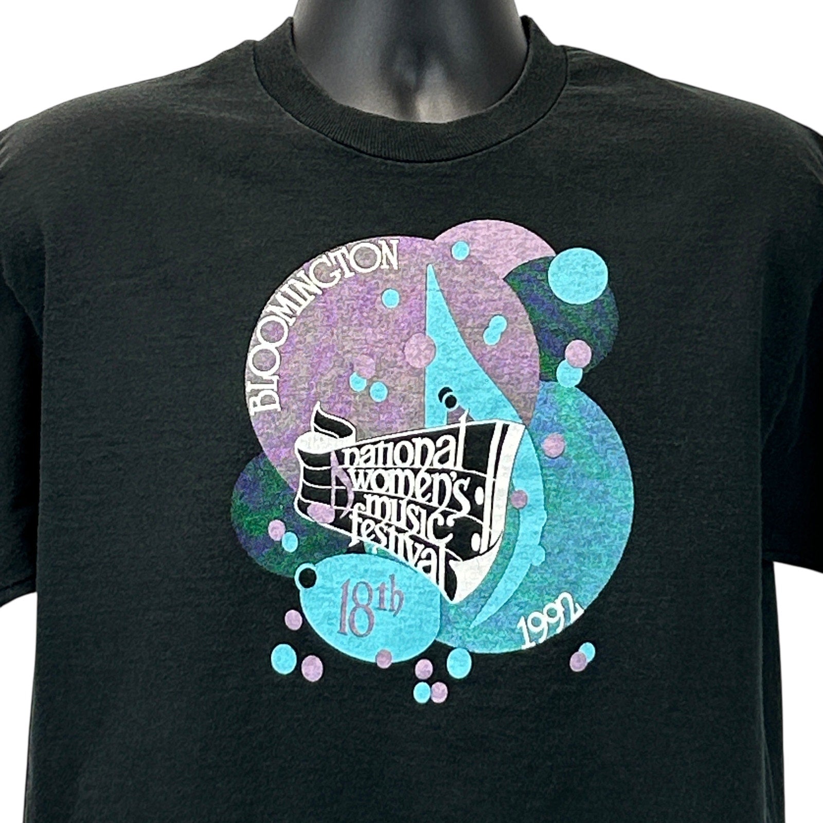 Vintage 90s 1992 National Womens Music Festival T Shirt Unisex XL Black Bloomington Indiana Fruit of the Loom Single Stitch Made In USA Graphic Tee