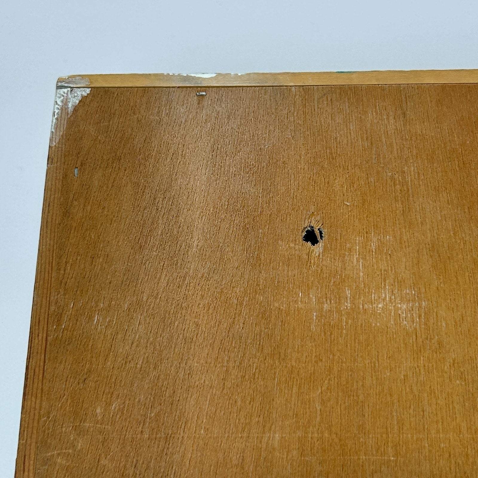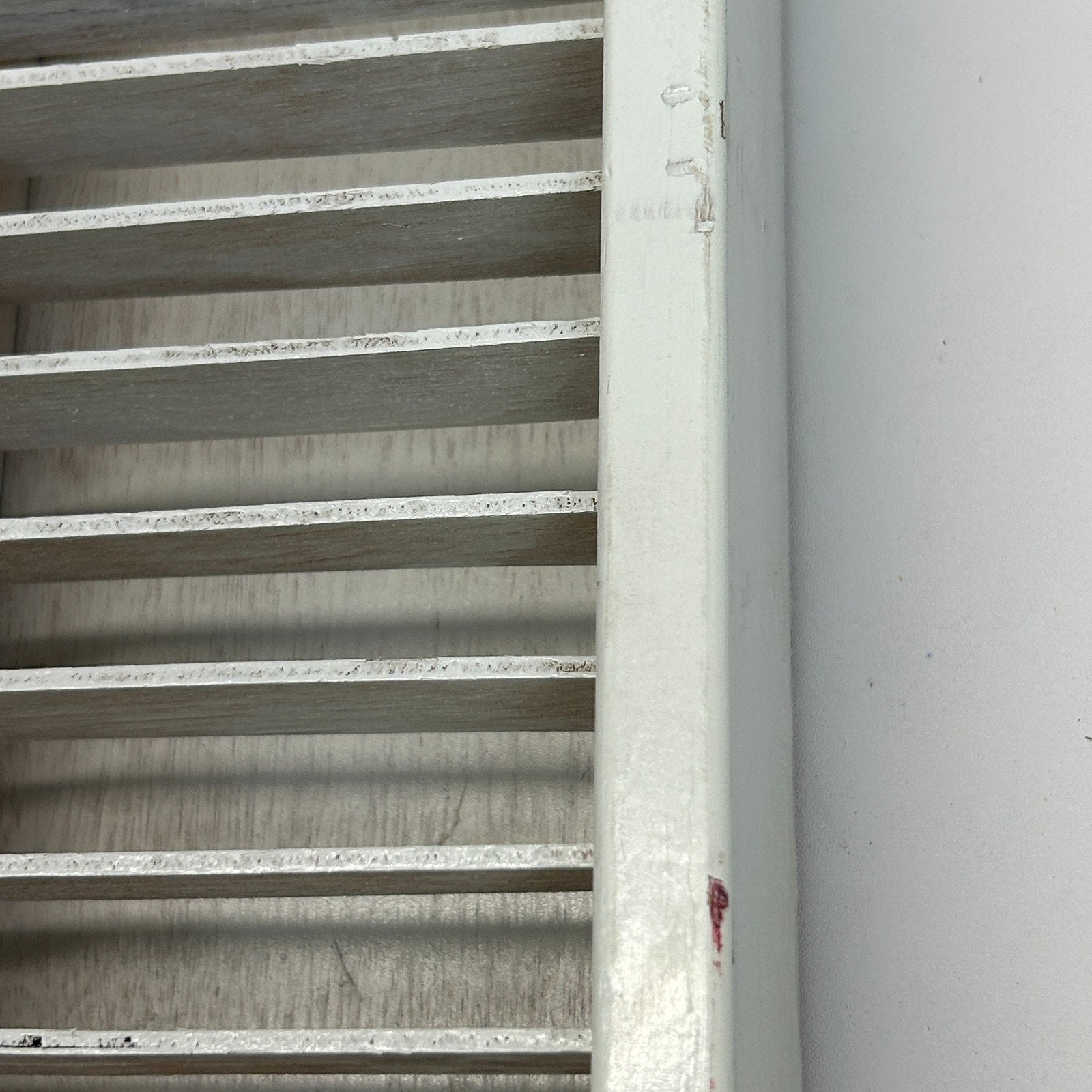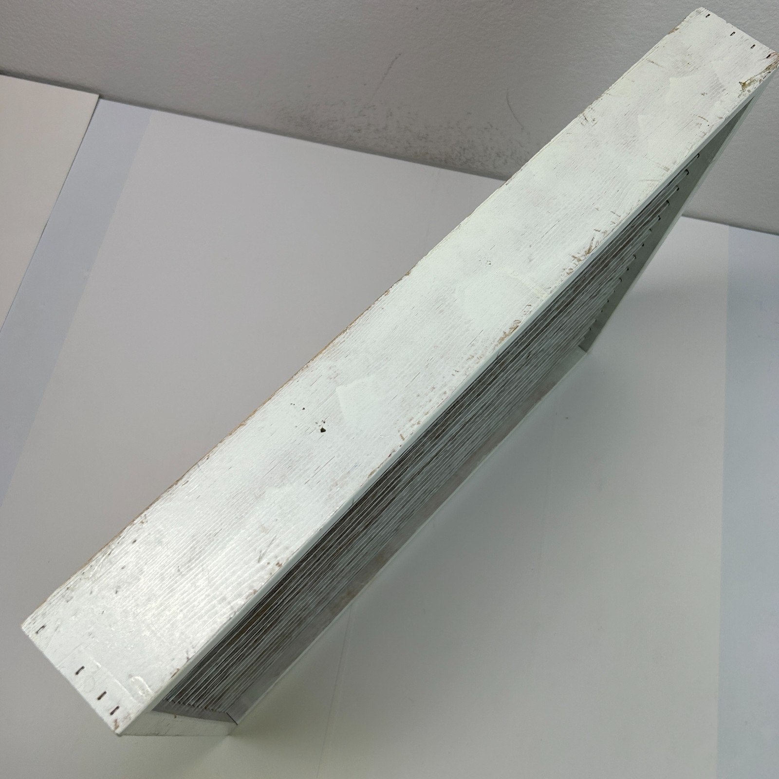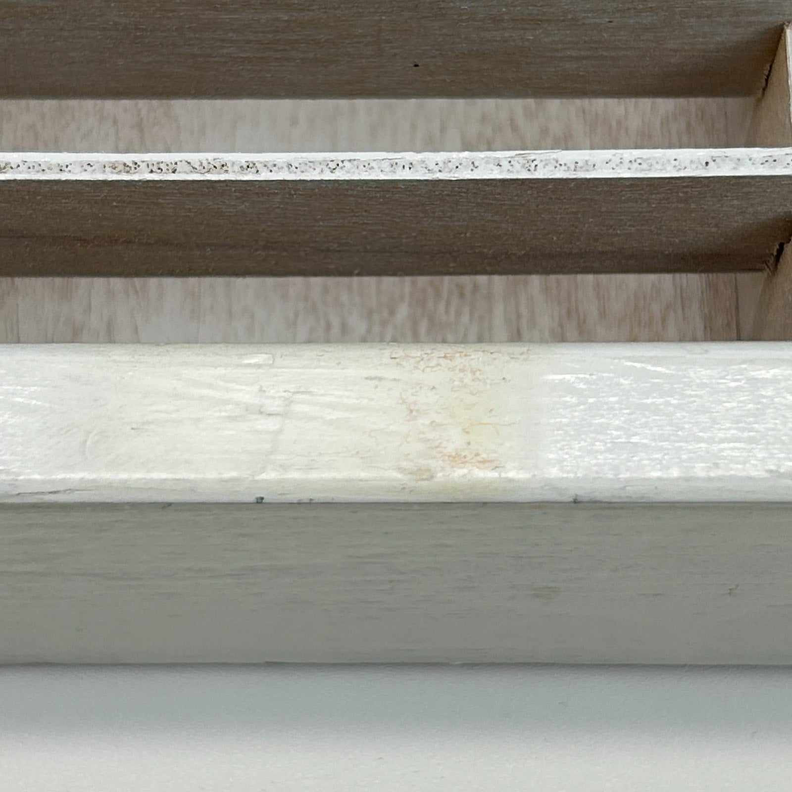 Has been painted white. The top wasn't painted too well. Has some scuffs and marks. See photos.