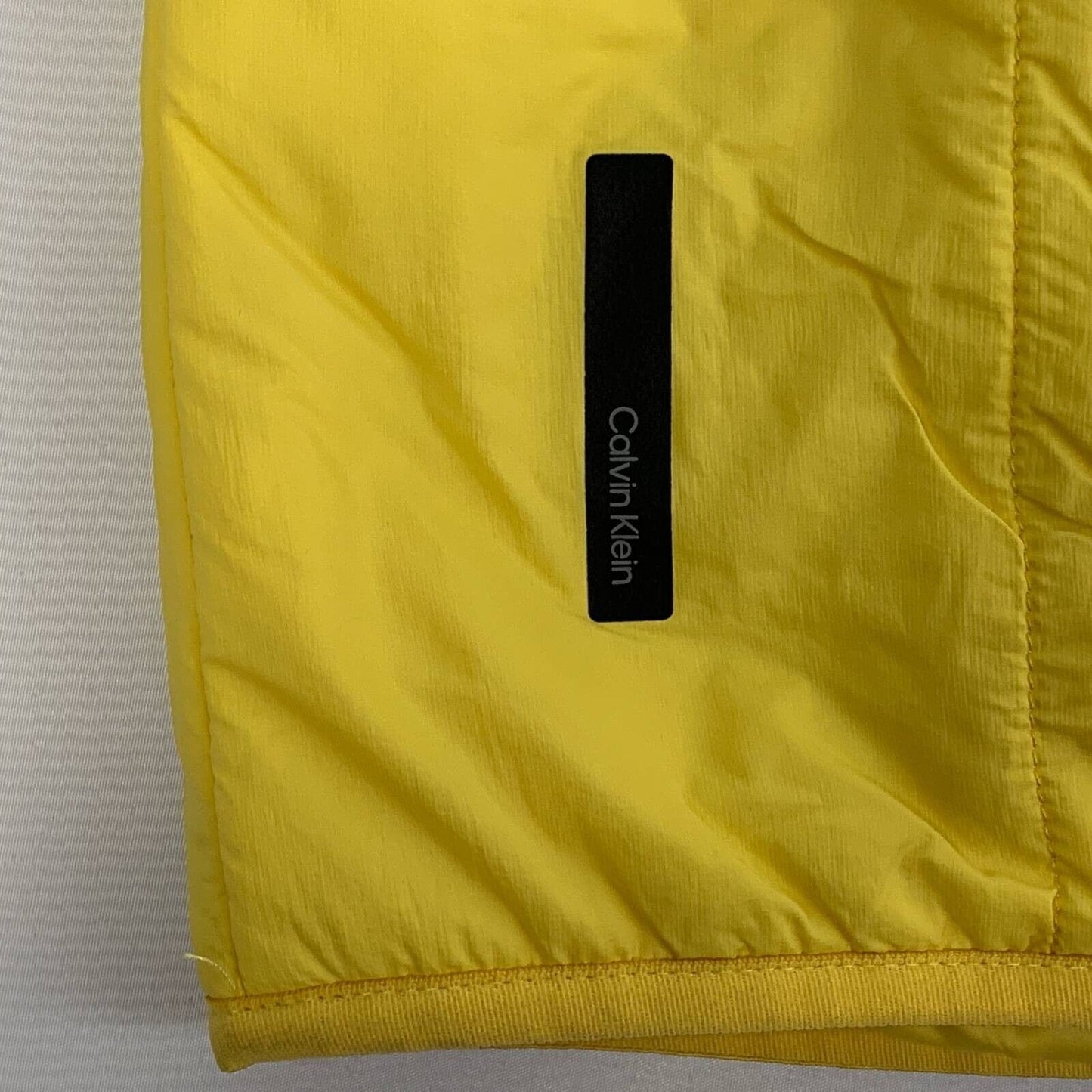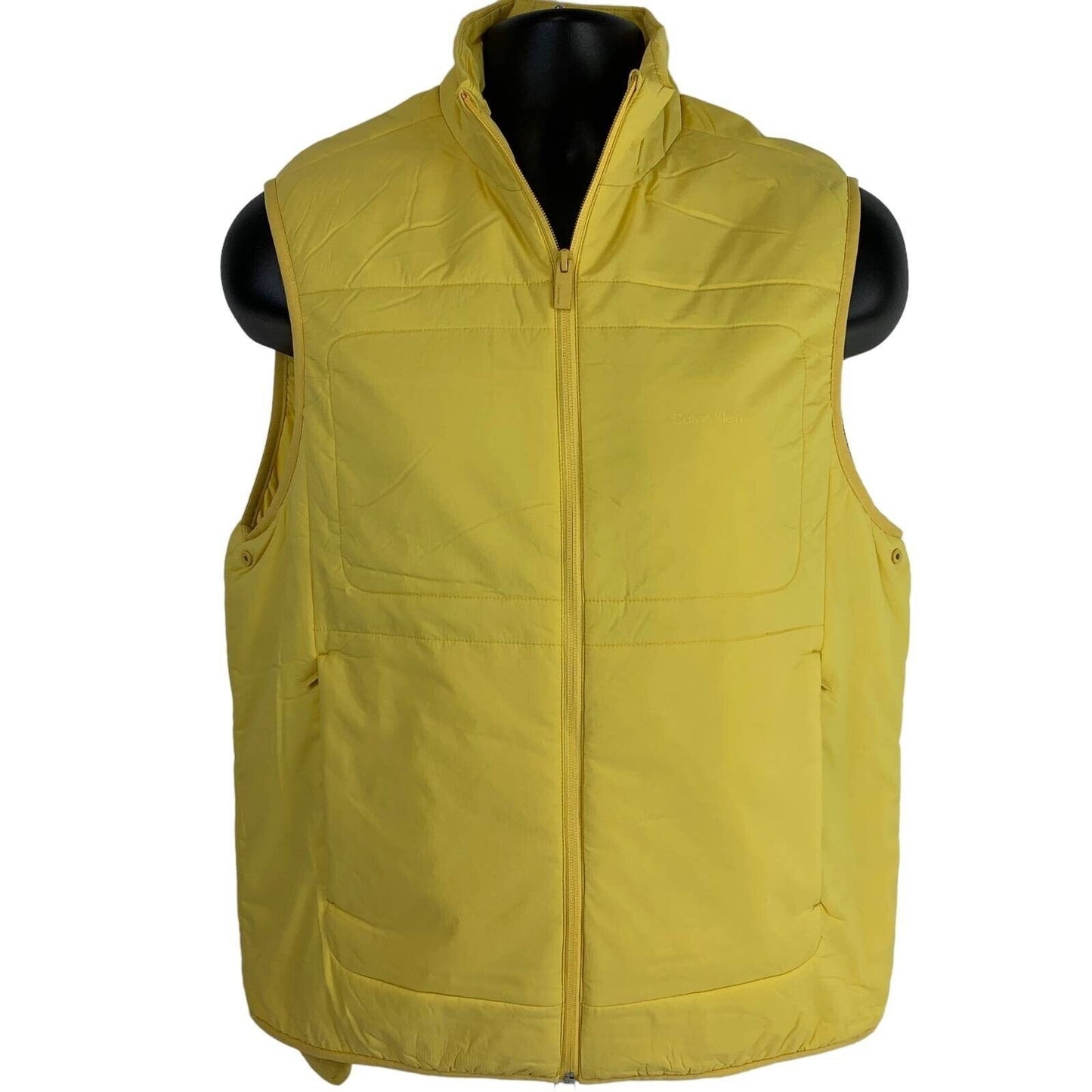 Calvin Klein CK Mens Thermal Protection Vest Yellow Waist Length Zipped Pockets Mock Neck Packable Water Repellent