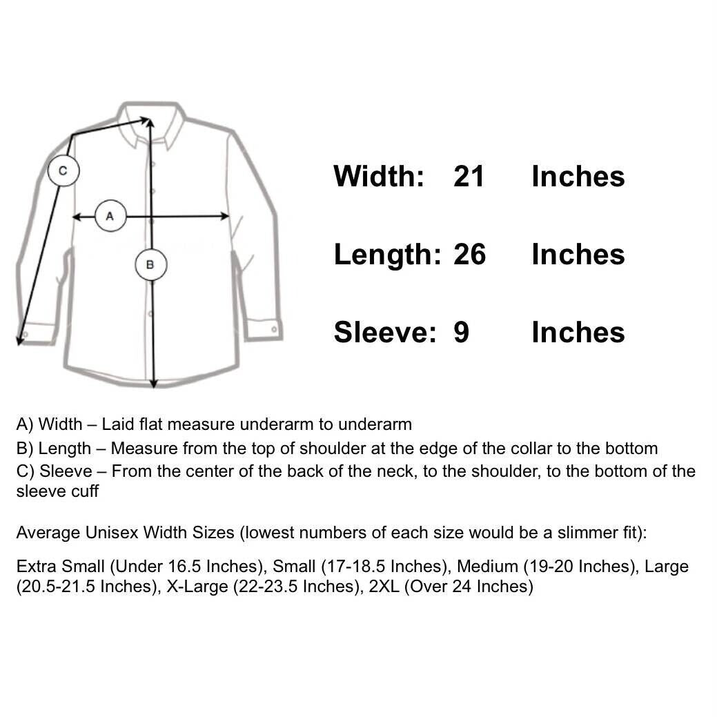 Sleeve Length 9" - From the center of the back of the neck to the shoulder to the bottom of the sleeve