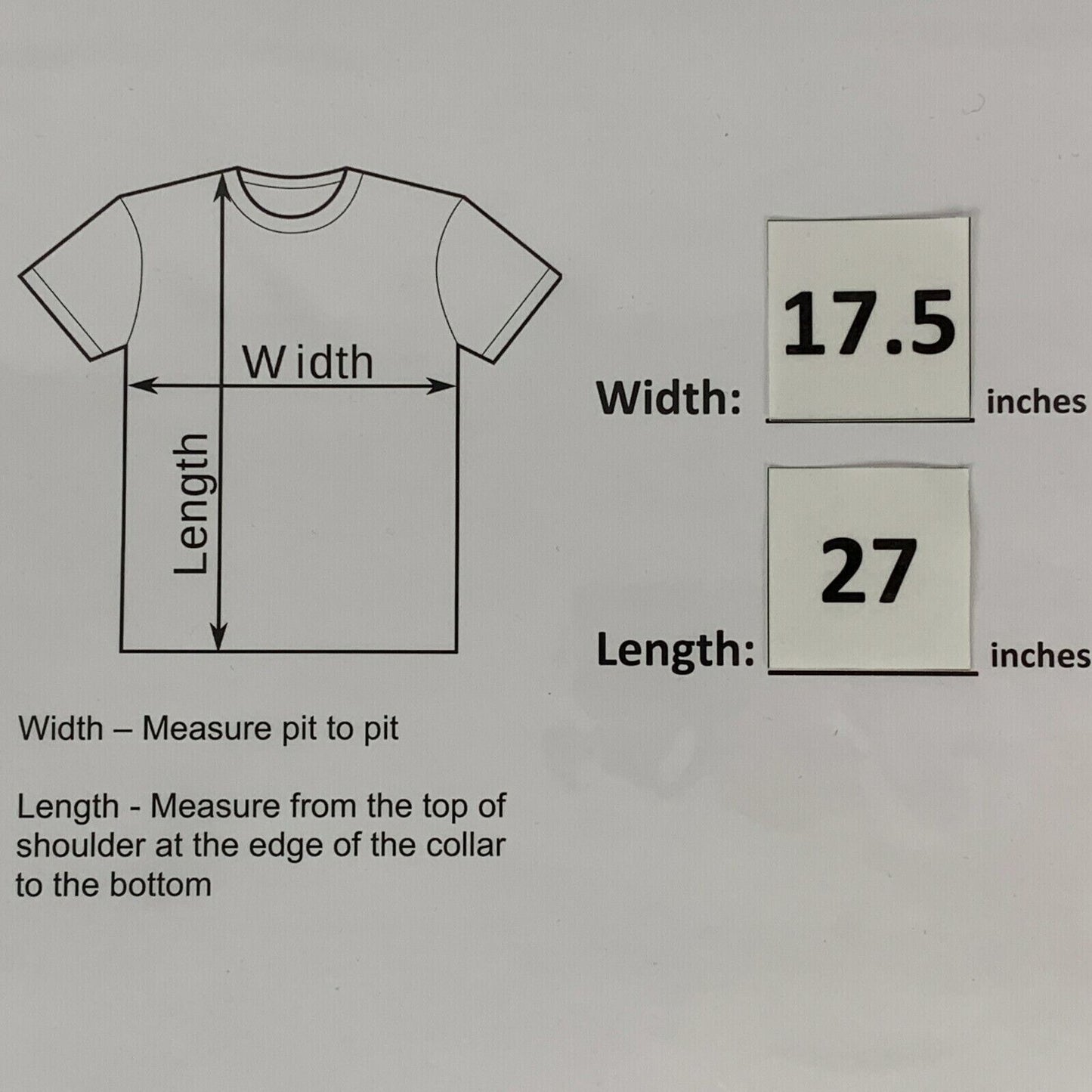 Largo 27" - Mida desde la parte superior del hombro, en el borde del cuello, hasta la parte inferior de la camisa.