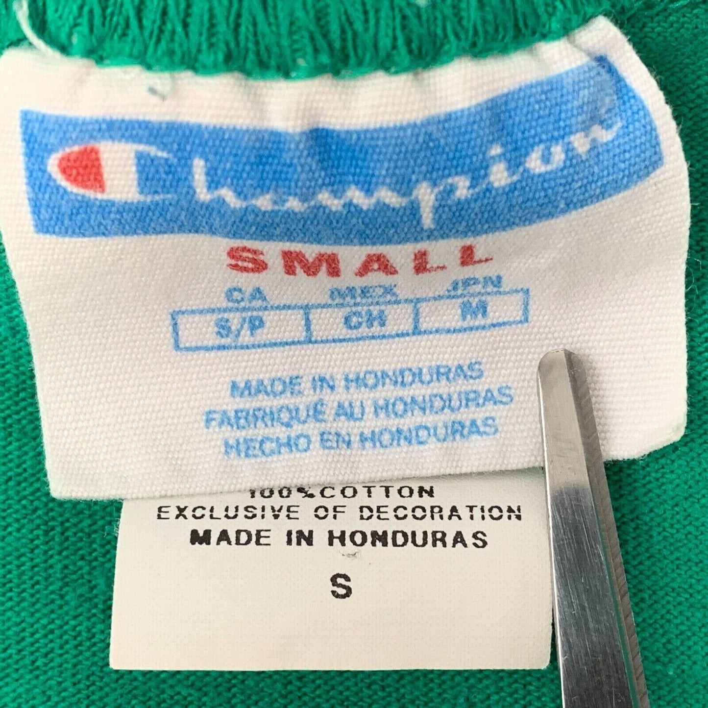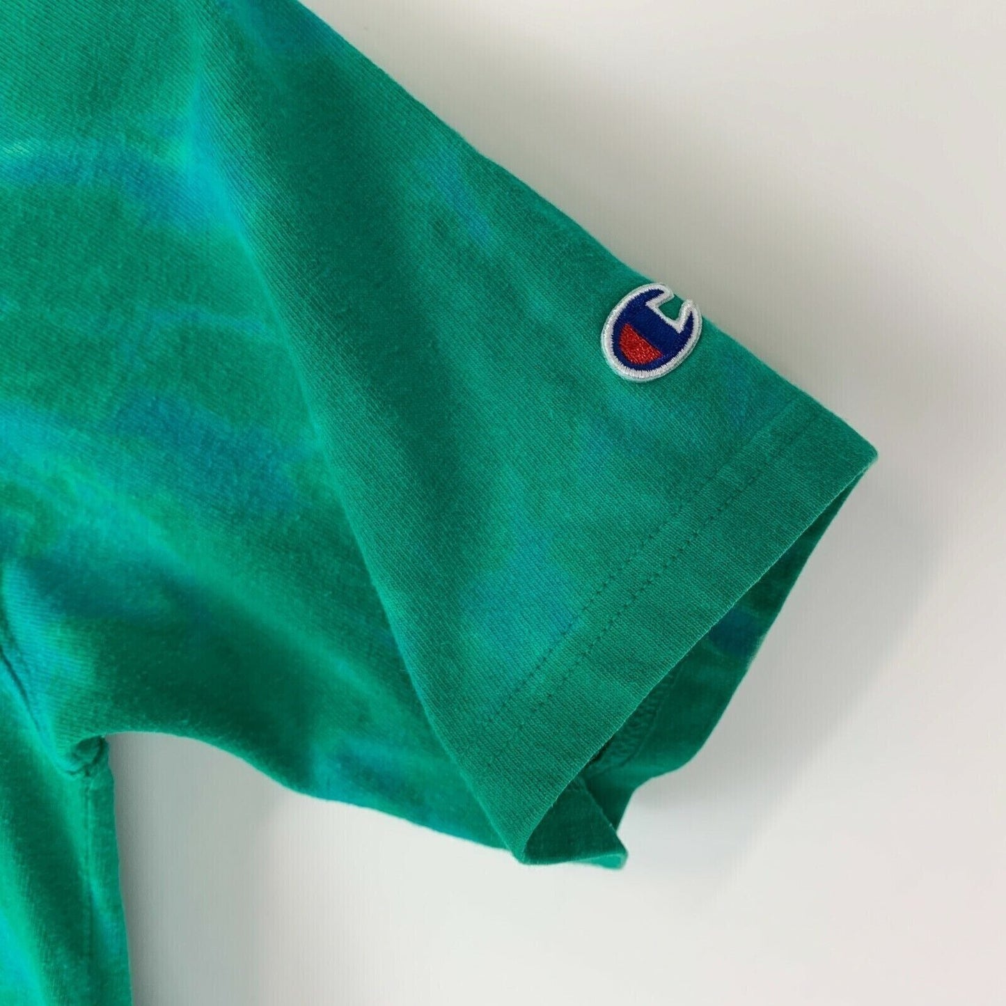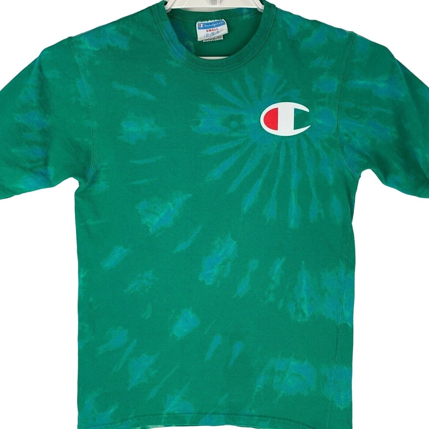 Camiseta tie dye de Champion, pequeña, con logo grande, para patinadores, patinadores, ropa de calle, camiseta gráfica de cuello redondo verde