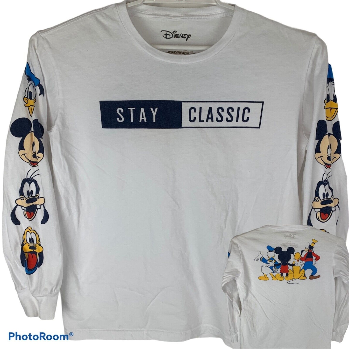 Camiseta clásica de Mickey Mouse de Walt Disney Stay, camiseta gráfica de manga larga blanca de Disneyland Pluto, Goofy, Donald Duck, Mad Engine