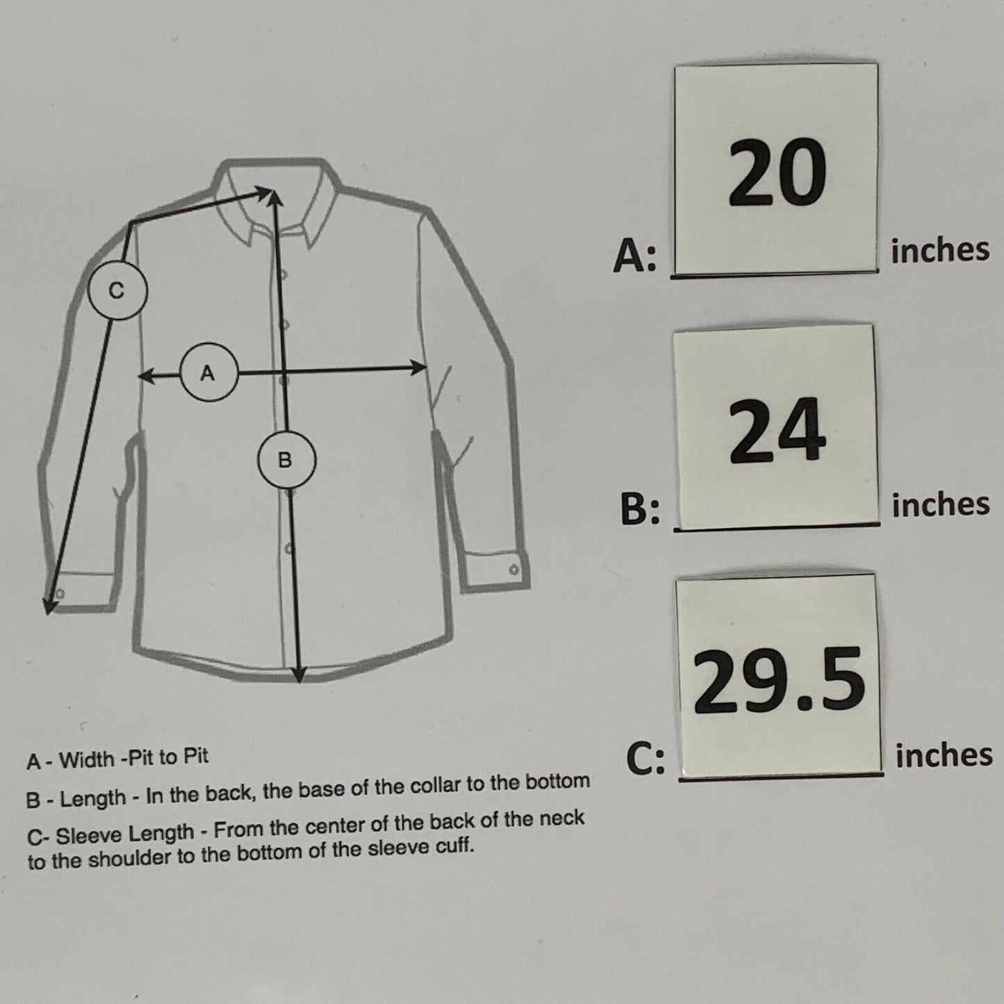 Largo de manga 29,5" - Desde el centro de la nuca hasta el hombro hasta la parte inferior de la manga