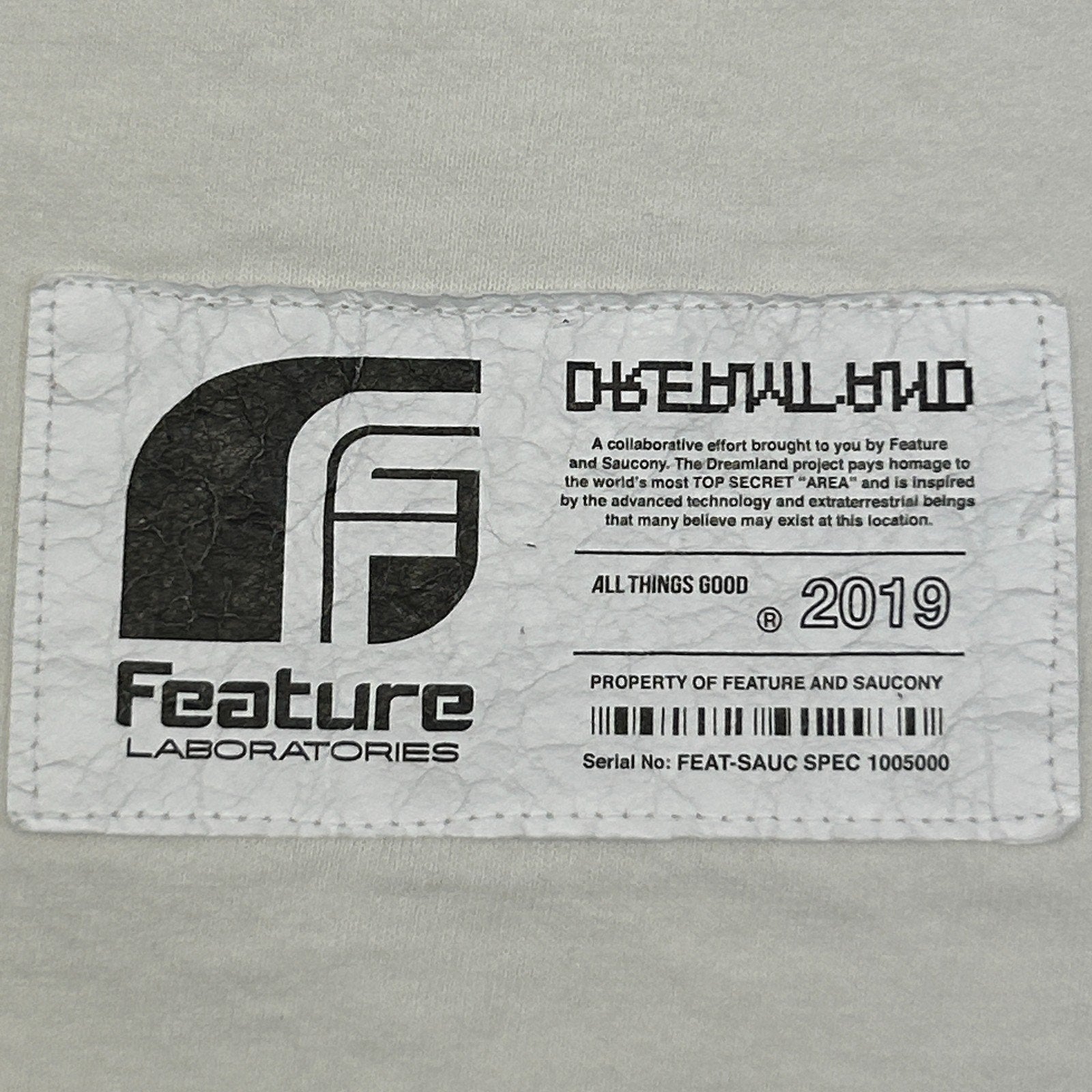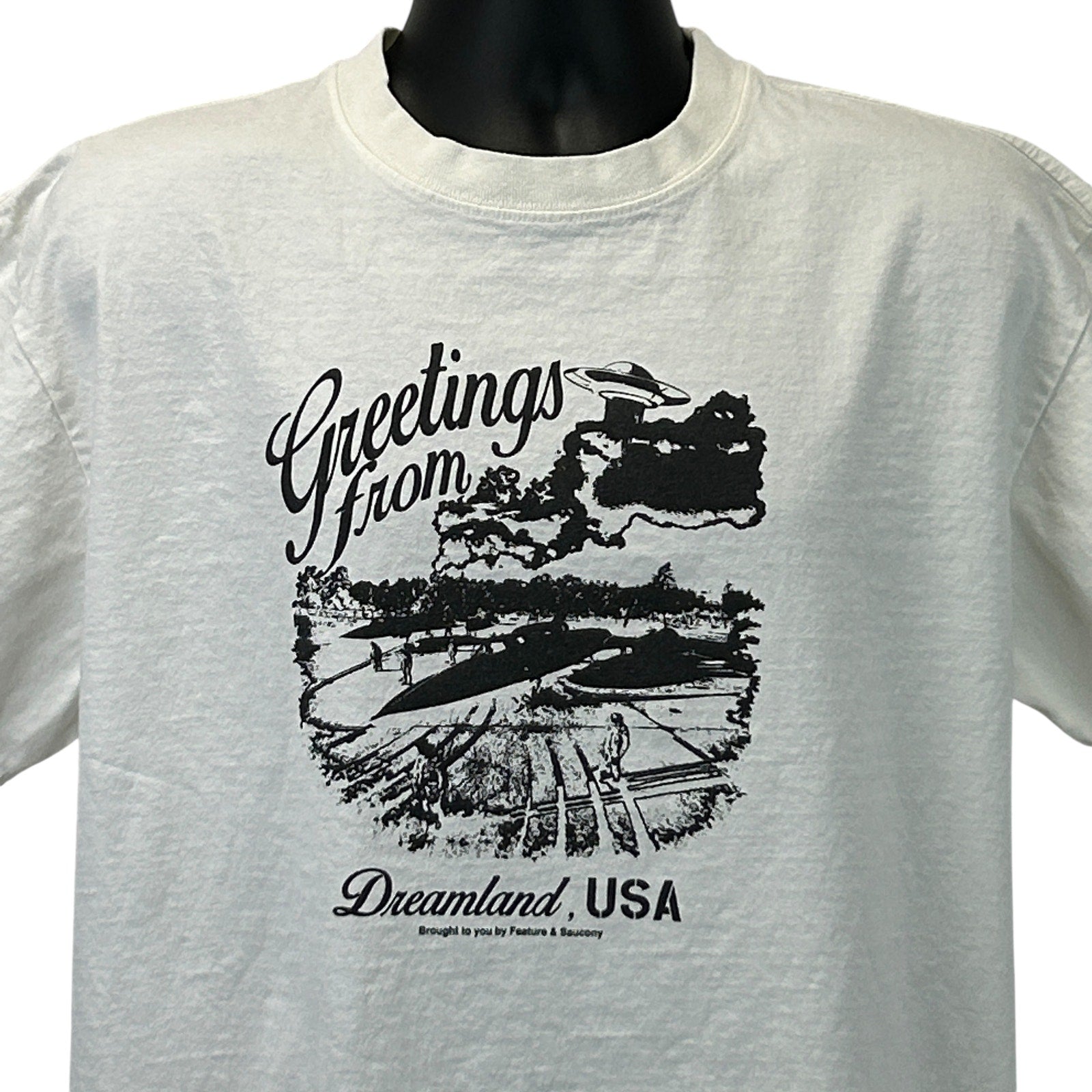Feature x Saucony Greetings From Dreamland USA T Shirt 2019 Aliens UFO Area 51 Streetwear Sneakerhead Sneaker Culture Lifestyle White XL X-Large Made In USA Graphic Tee