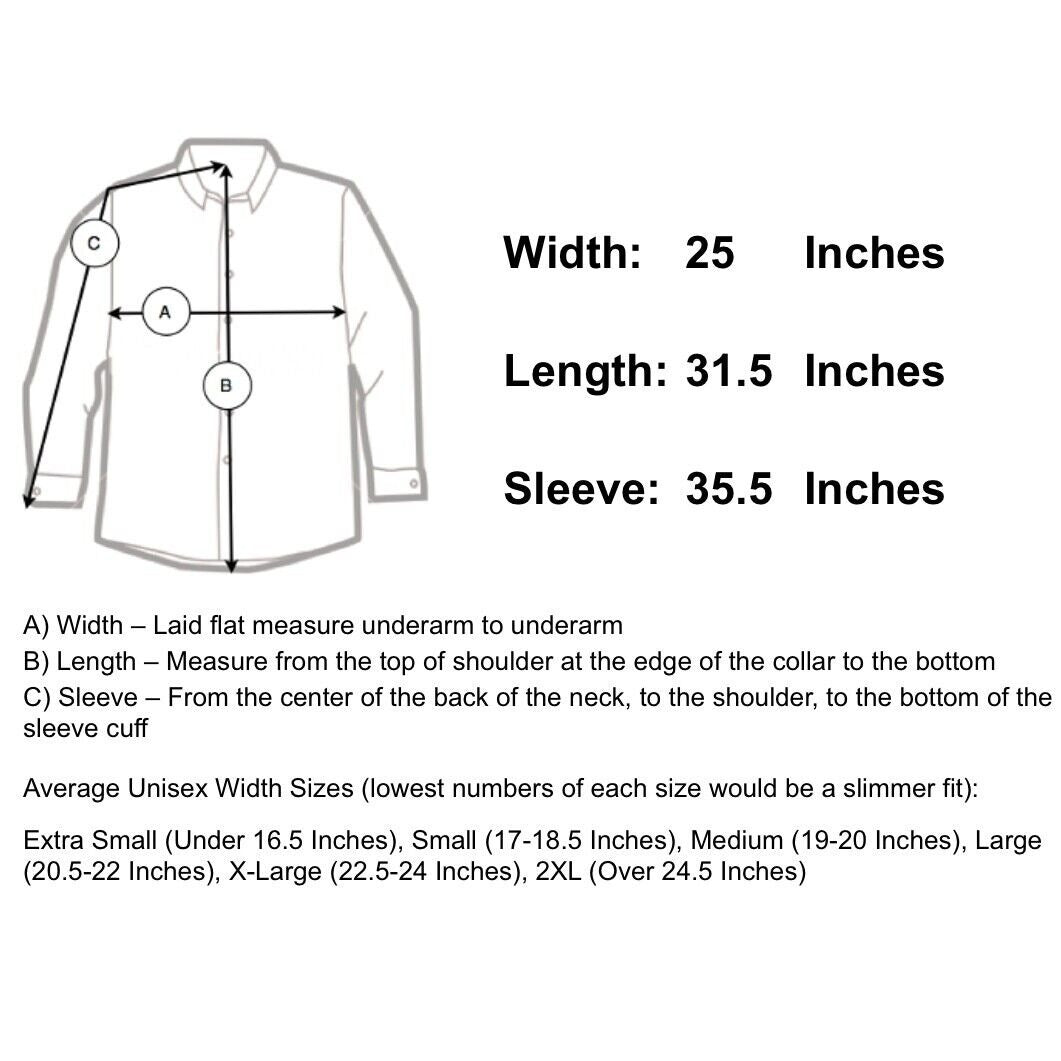 Sleeve Length 35.5" - From the center of the back of the neck to the shoulder to the bottom of the sleeve