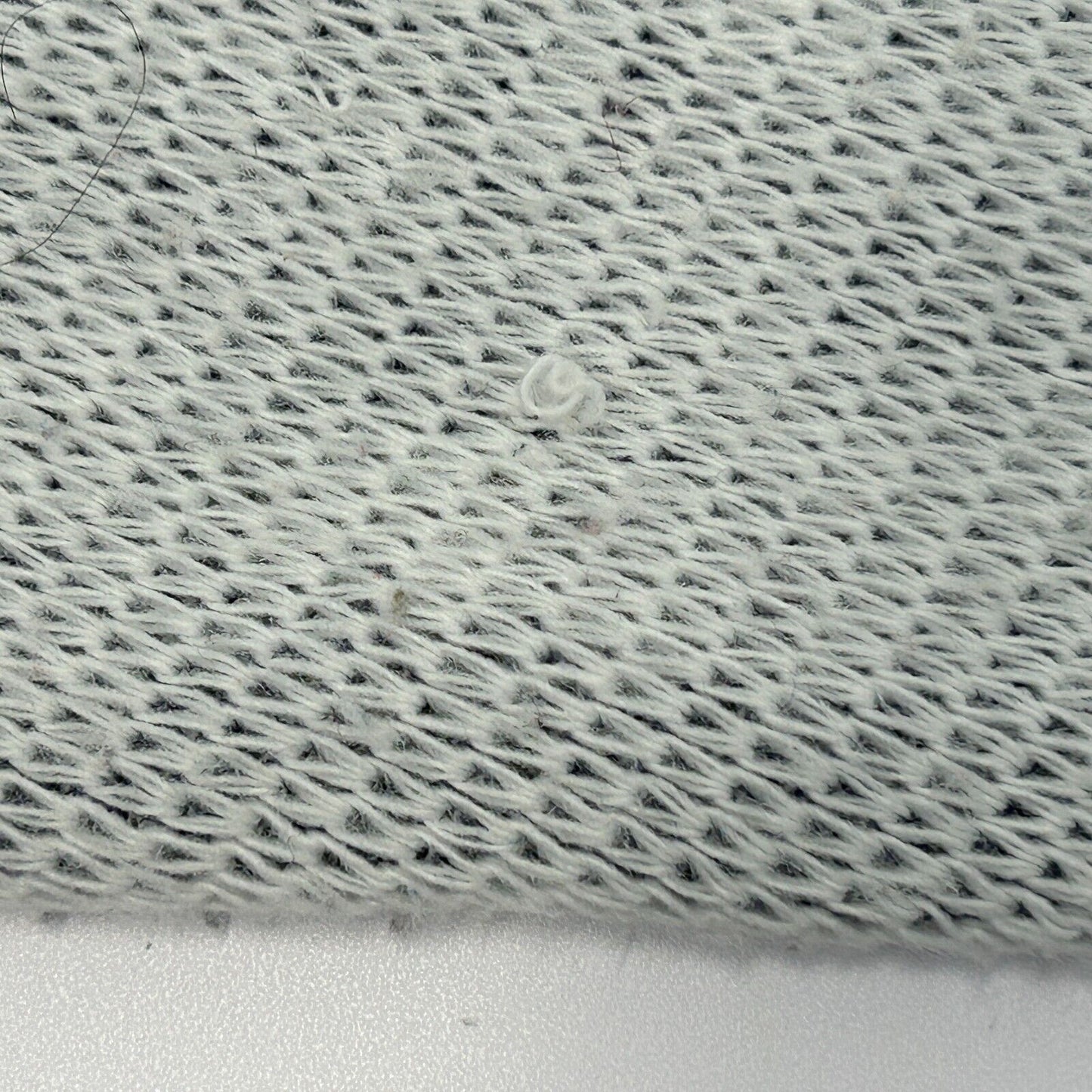 Tiene algunos tirones, una mancha tenue y la etiqueta se está desprendiendo. Falta la etiqueta de talla, pero creo que mide similar a una talla mediana. Verifique las medidas para asegurarse de que le quede bien. Vea las fotos.