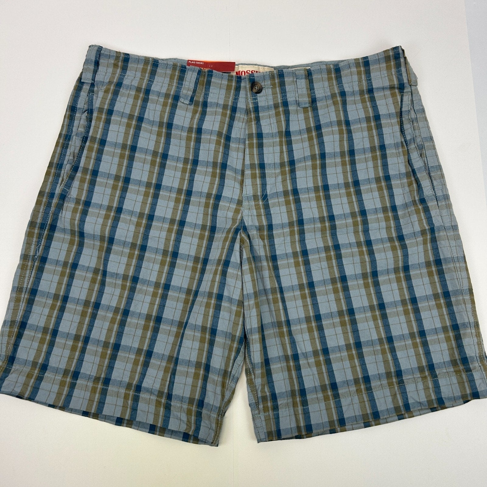Mossimo Plaid Bermuda Shorts Low Waist Flat Front Pockets Cotton Blue 40