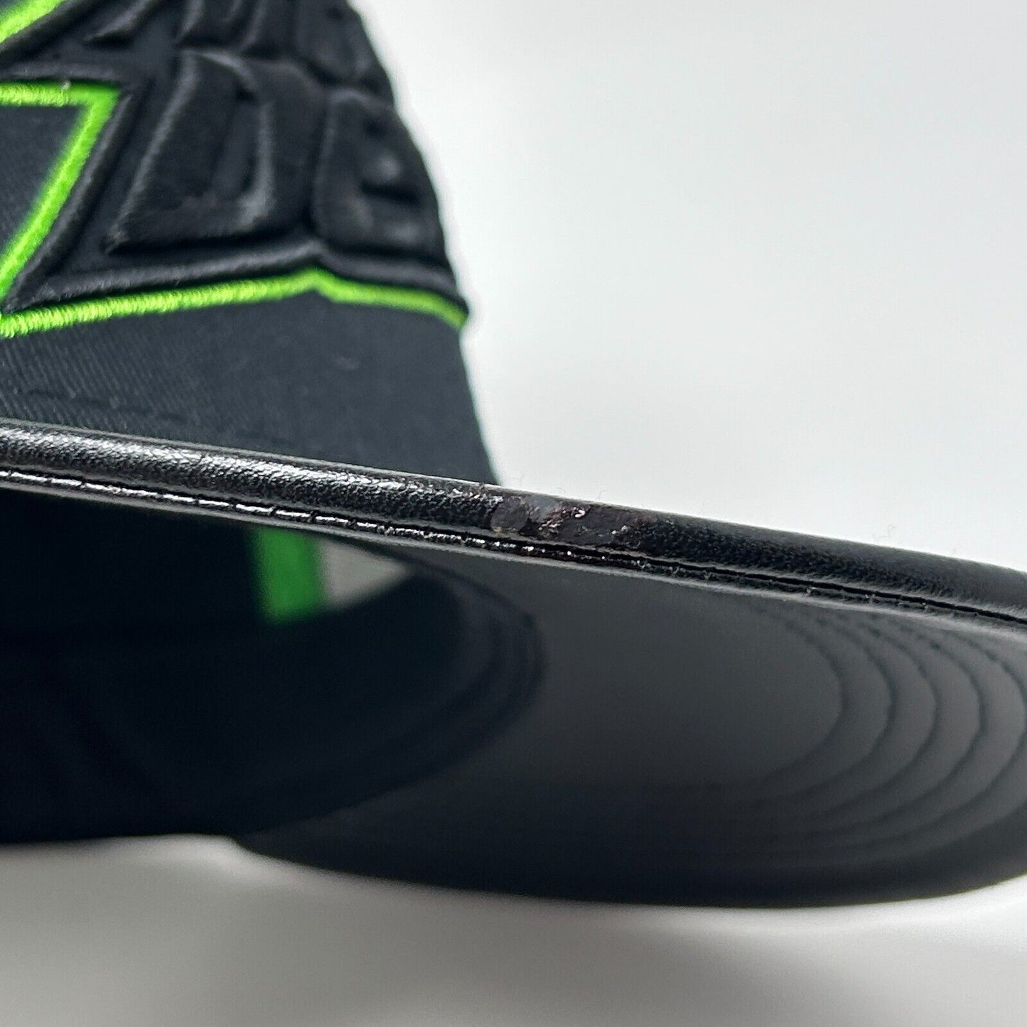 Has some wear at the tip of the bill. No other flaws noticed. Has been cleaned and sanitized. See photos.