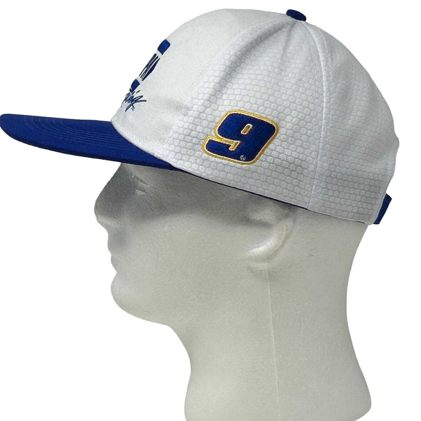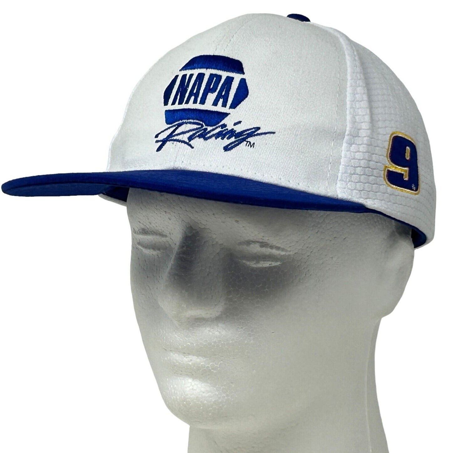 Gorra con correa trasera Chase Elliott 9 de NAPA Racing Gorra de béisbol de seis paneles blanca con diseño de auto de carreras de autos de NASCAR Motorsports