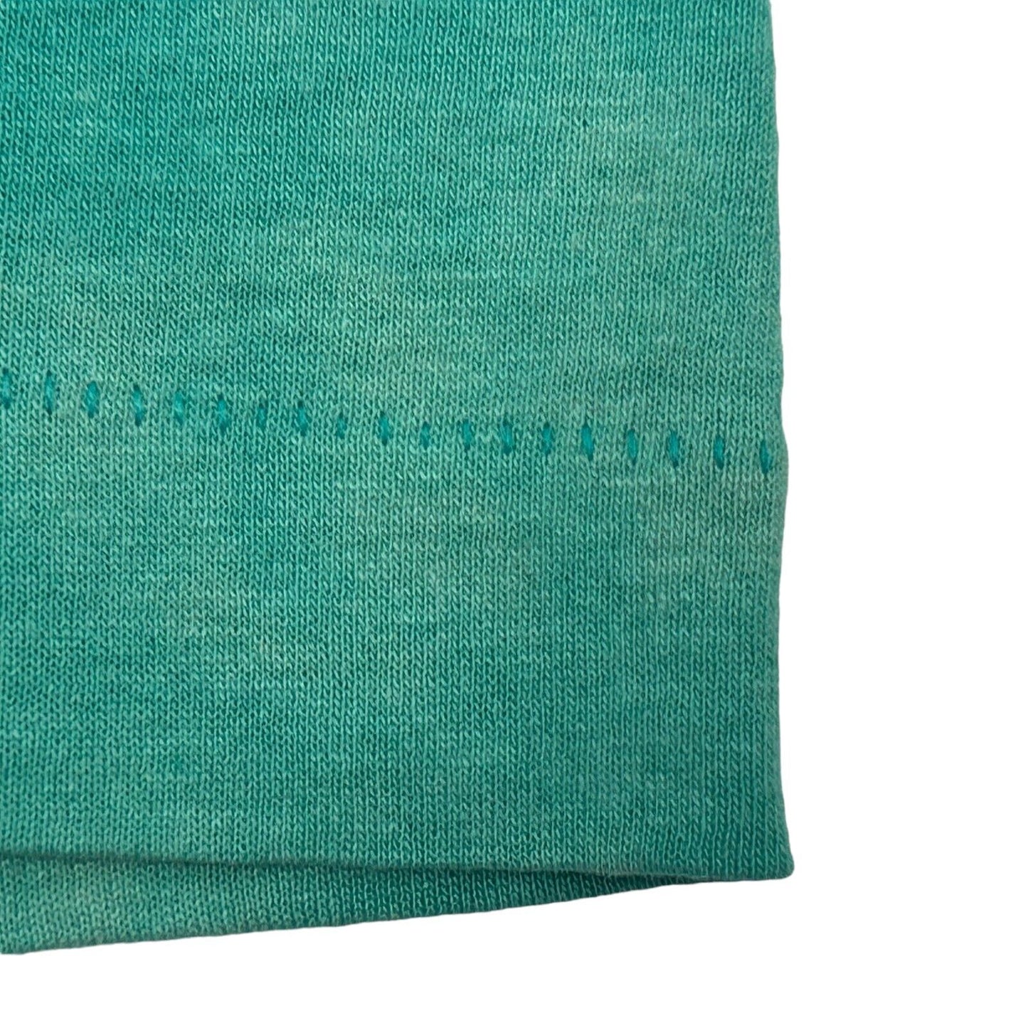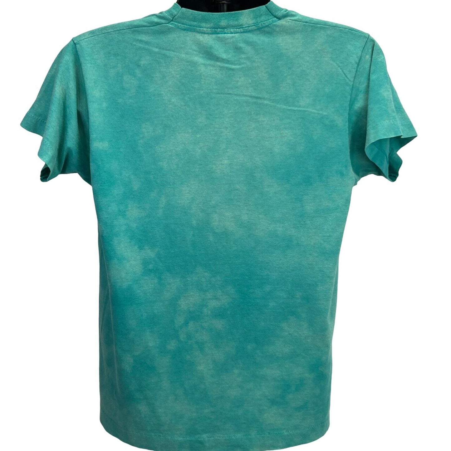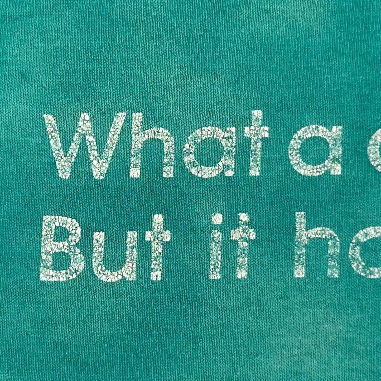 Has a small pinhole on the bottom front, image fading, and a paint spot - no other flaws noticed. Has been washed and is ready for you to wear. Tag is a Large but I feel it measures more similar to a modern Medium. Check measurements to ensure fit. See photos.