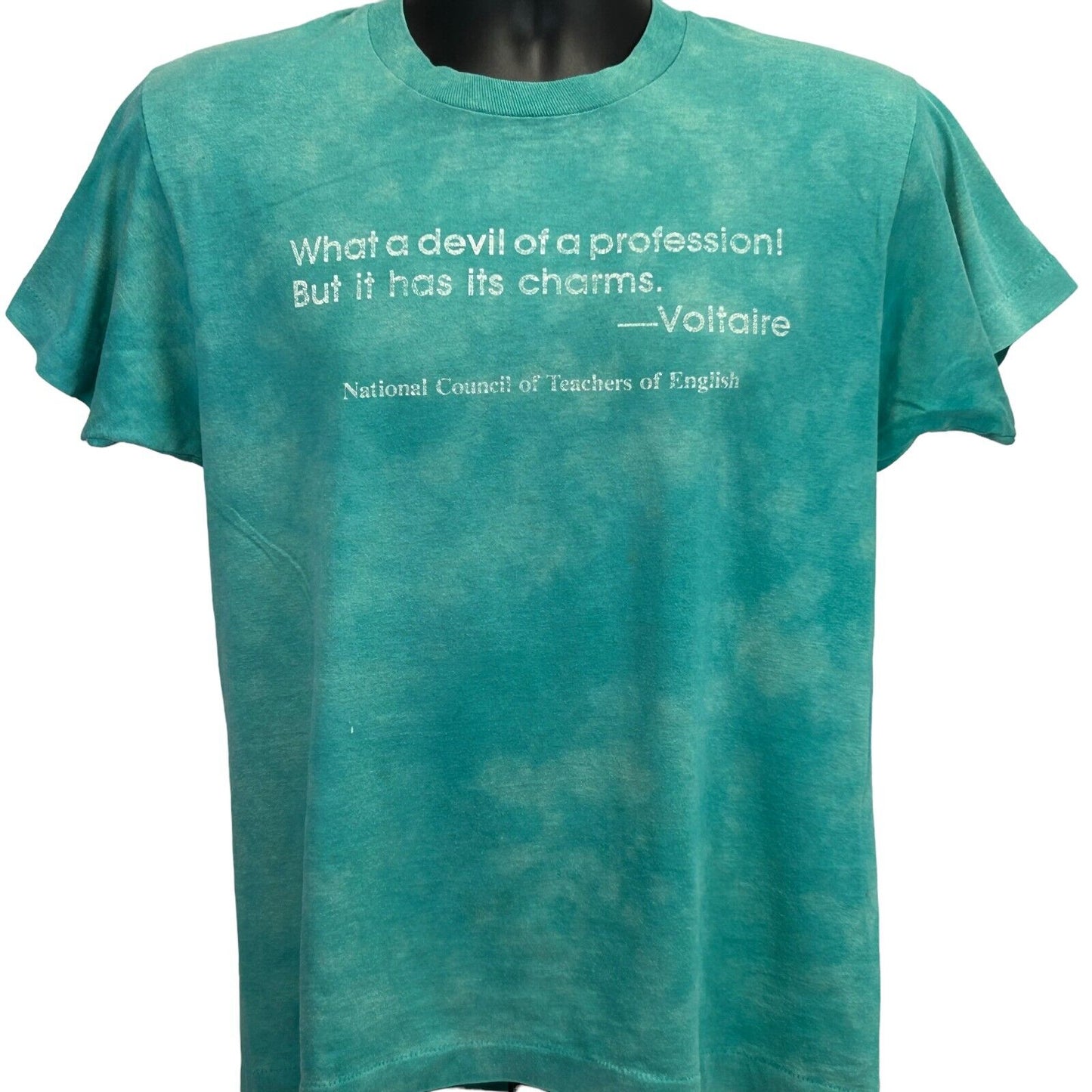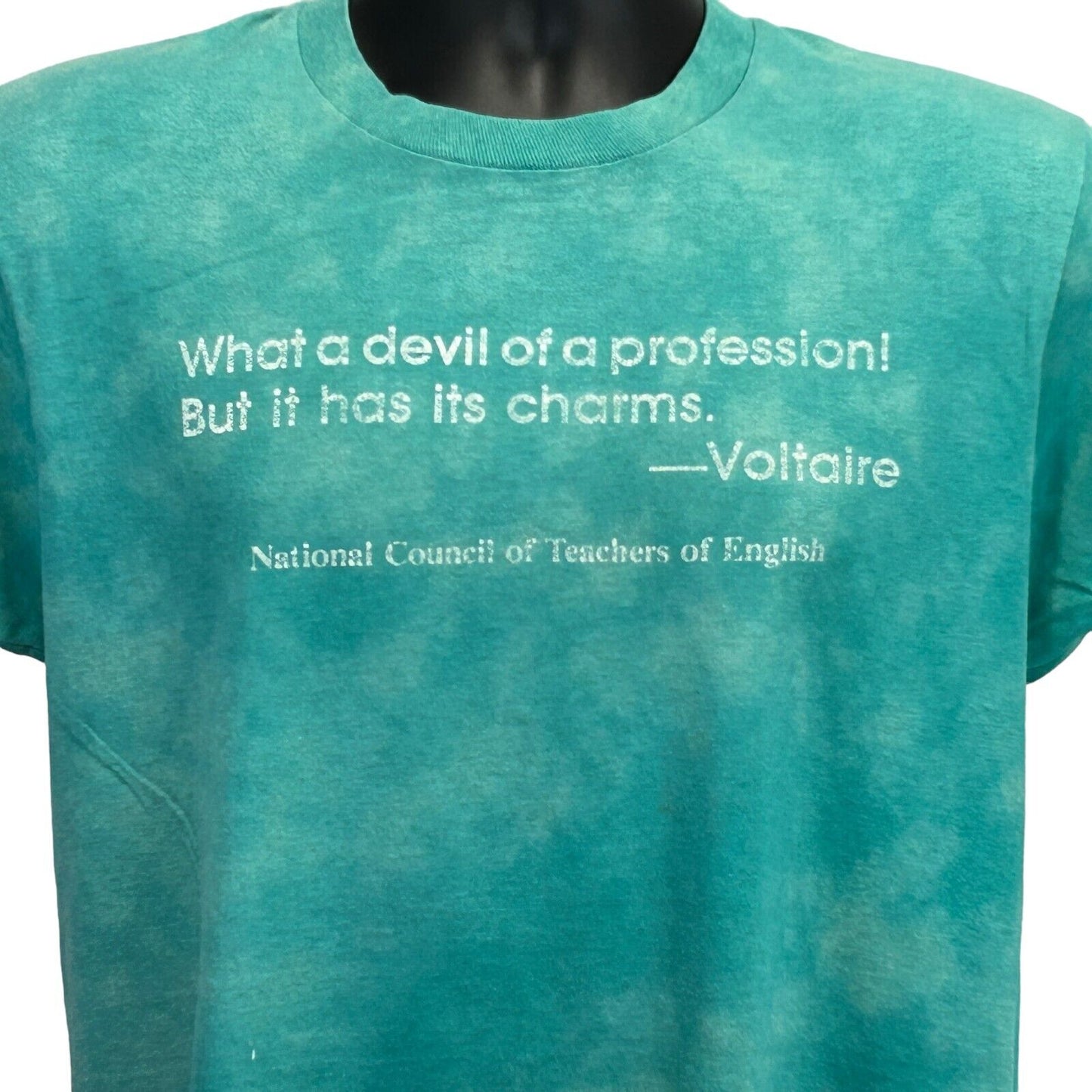 National Council of Teachers of English Vintage 80s T Shirt NCTE School Education Voltaire Quote Green Tie Dye Screen Stars Single Stitch Made In USA Graphic Tee
