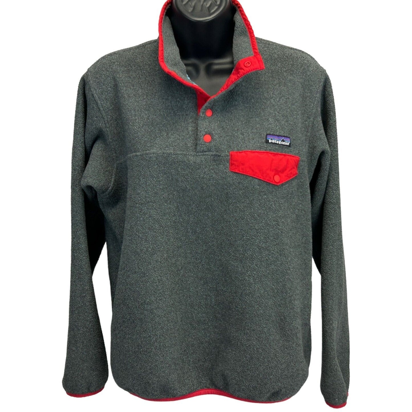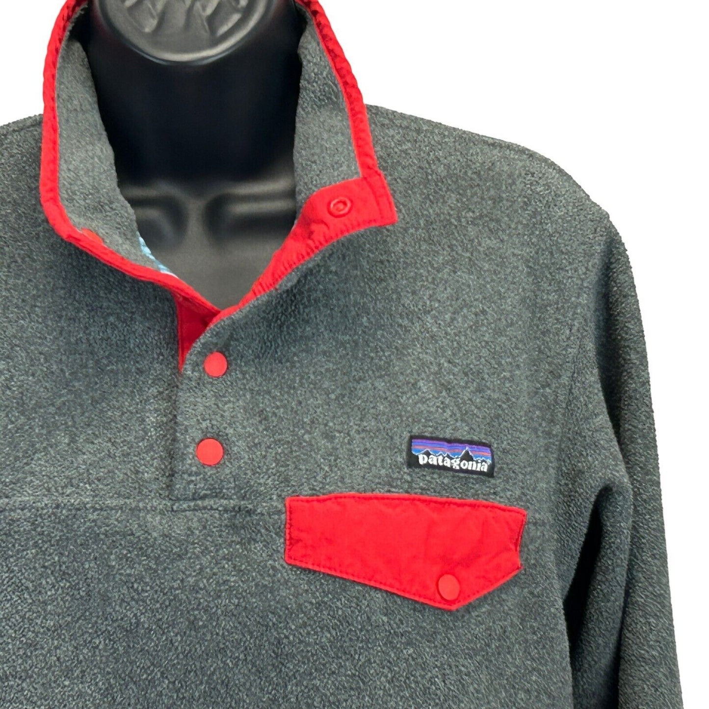 Patagonia Womens Lightweight Synchilla Snap-T Henley Fleece Pull-over Jacket Suéter Gris Rojo 25455