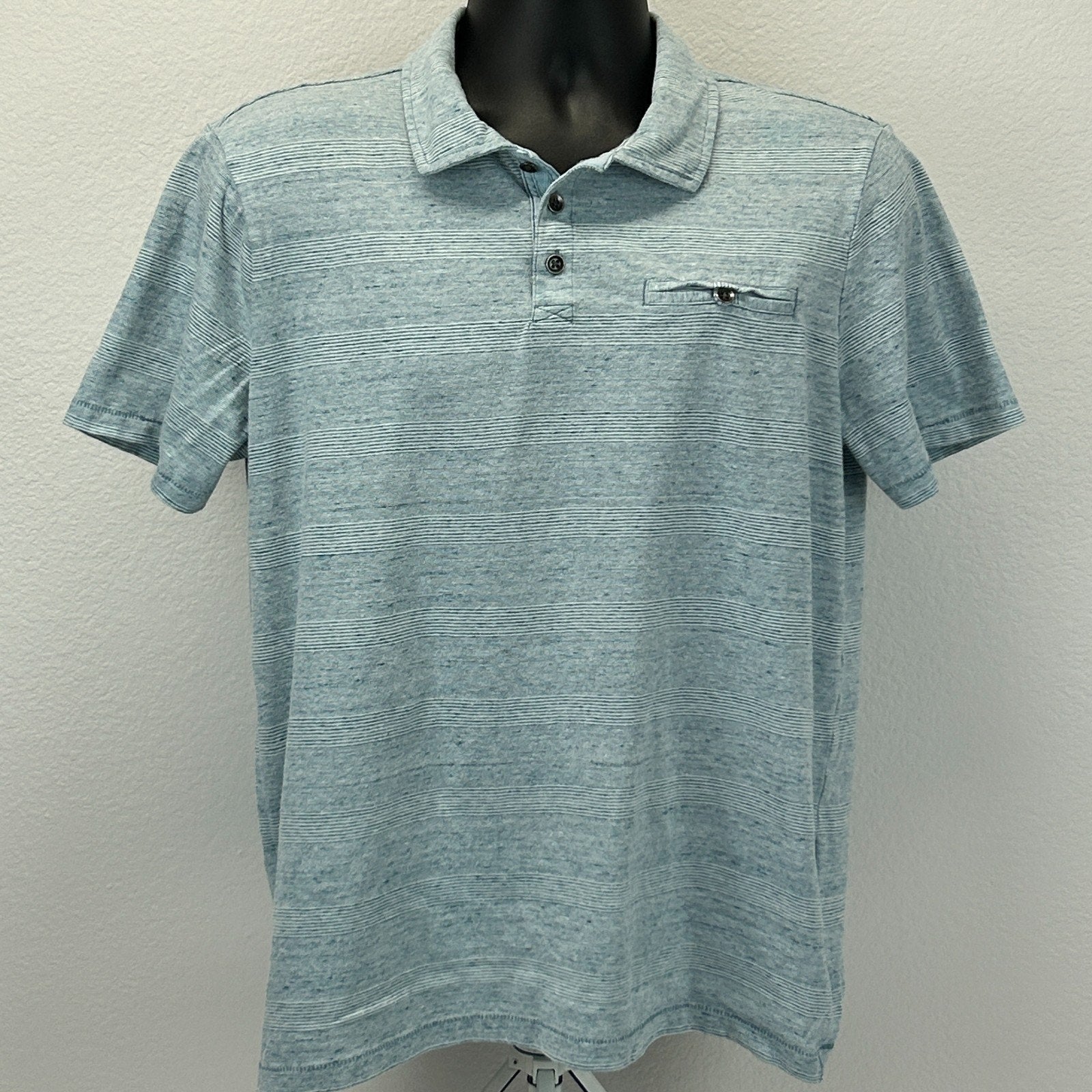 Rock & Republic Polo Shirt Short Sleeve Pocket Single Stitch Striped Blue L Large
