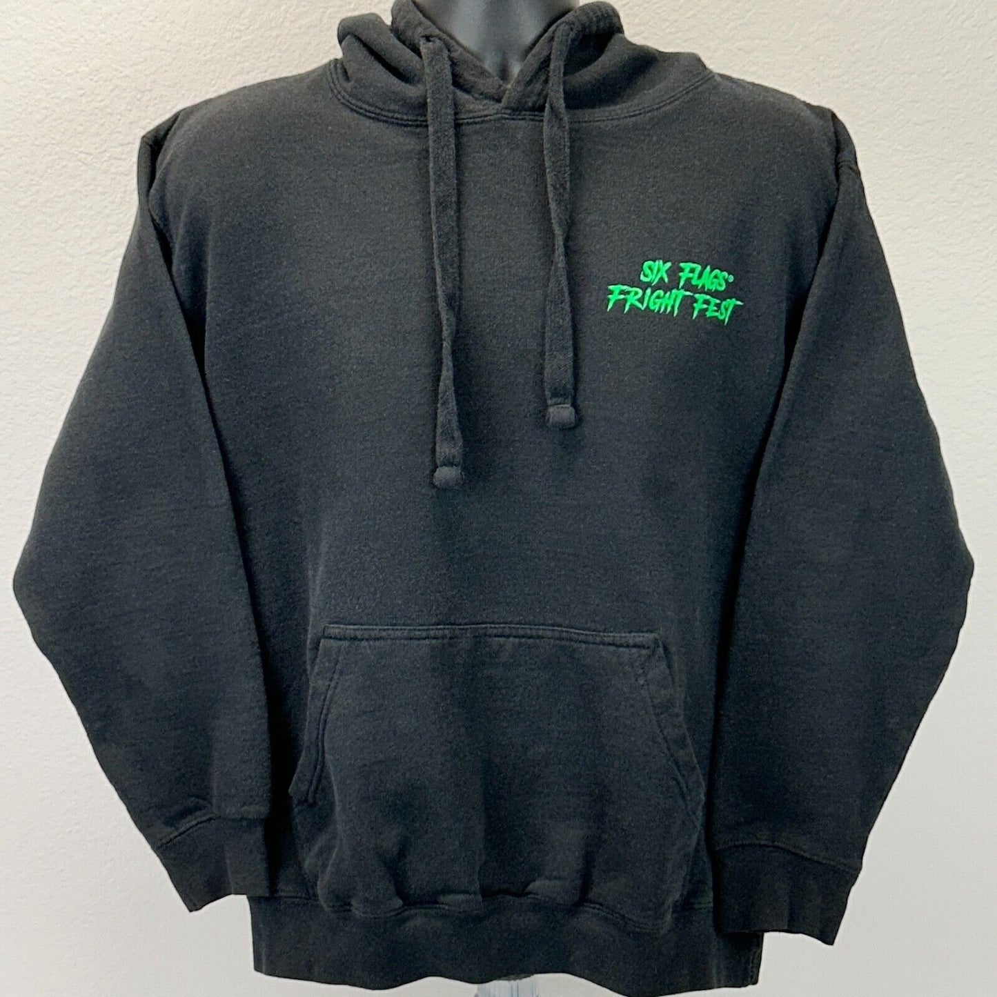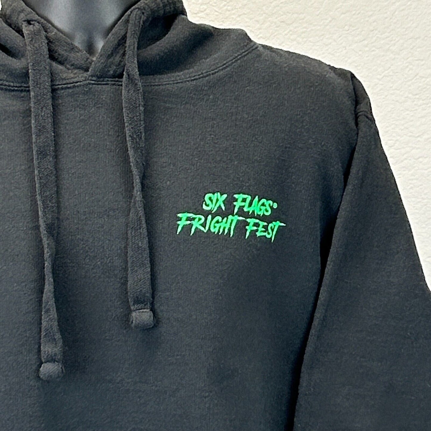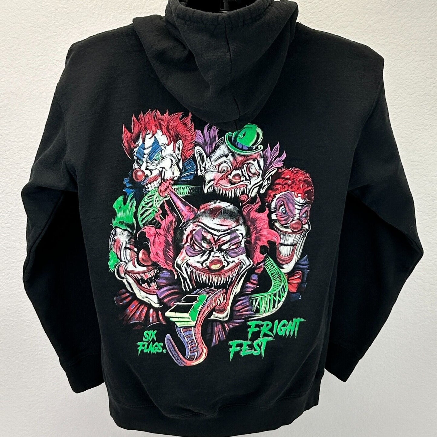 Six Flags Fright Fest Hoodie Mens Medium Scary Clowns Halloween Horror Hooded Sweatshirt Black