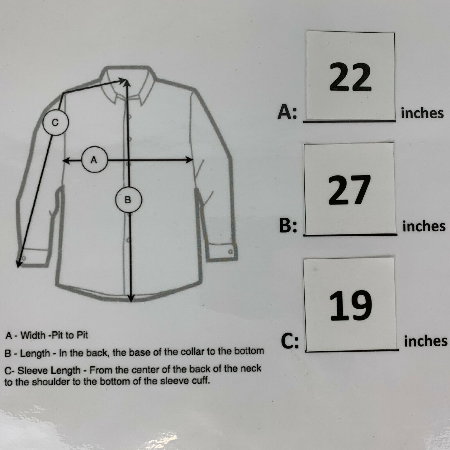 Sleeve Length 19" - From the center of the back of the neck to the shoulder to the bottom of the sleeve