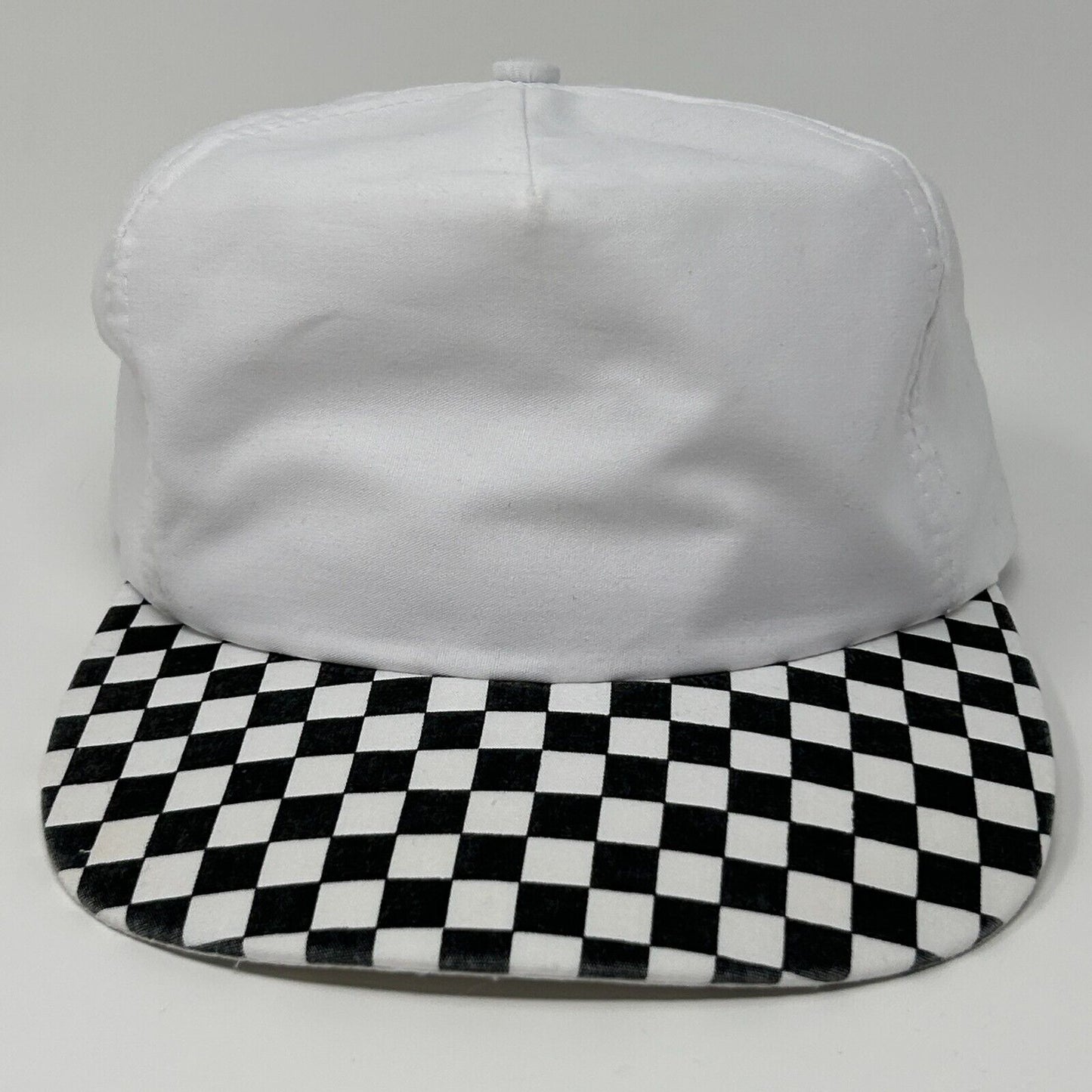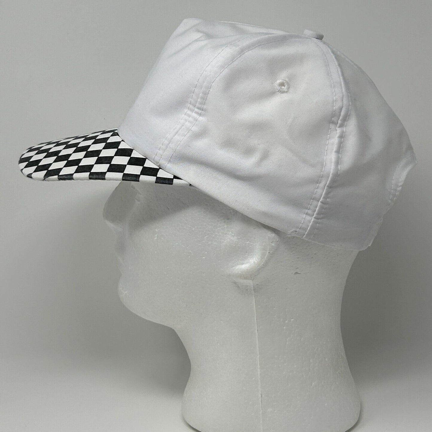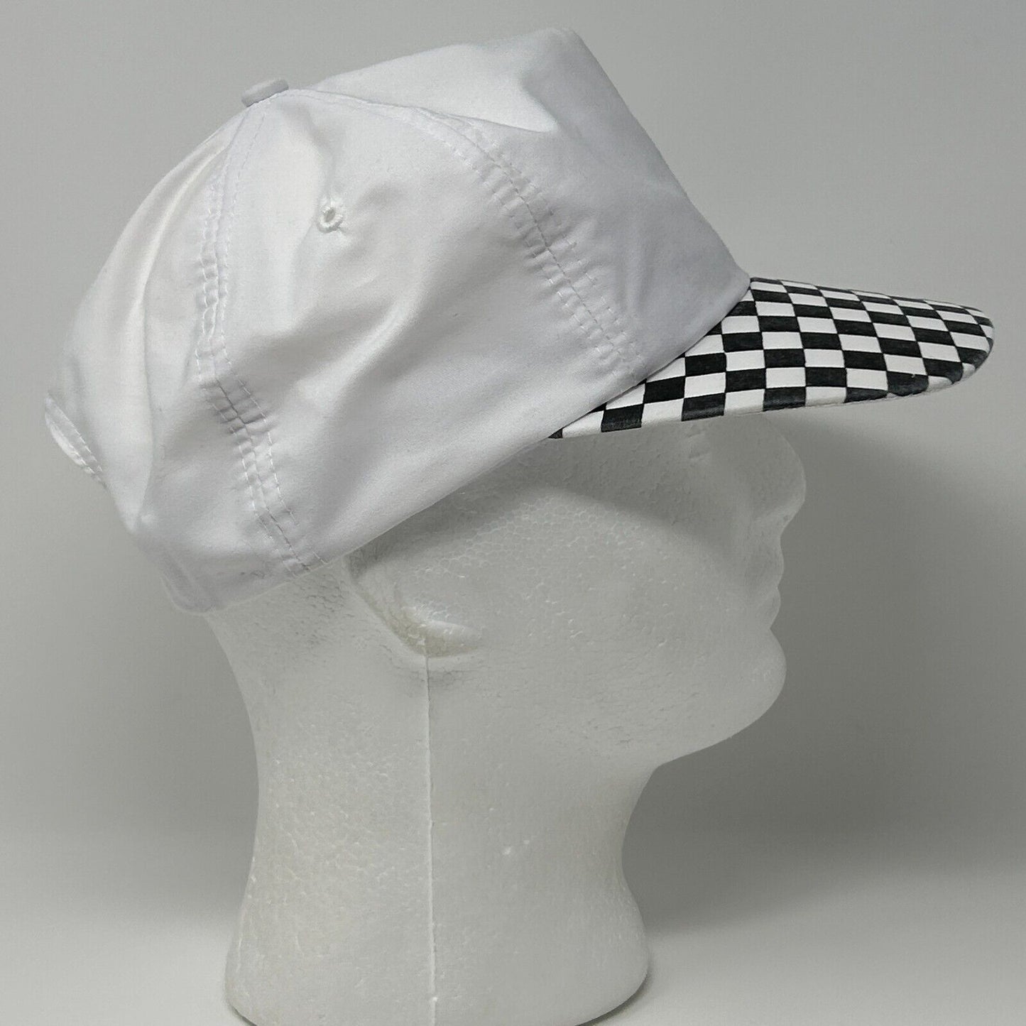 Vintage 80s Blank Solid Checkered Bill Hat Cap 5 Panel Sportcap Snapback White