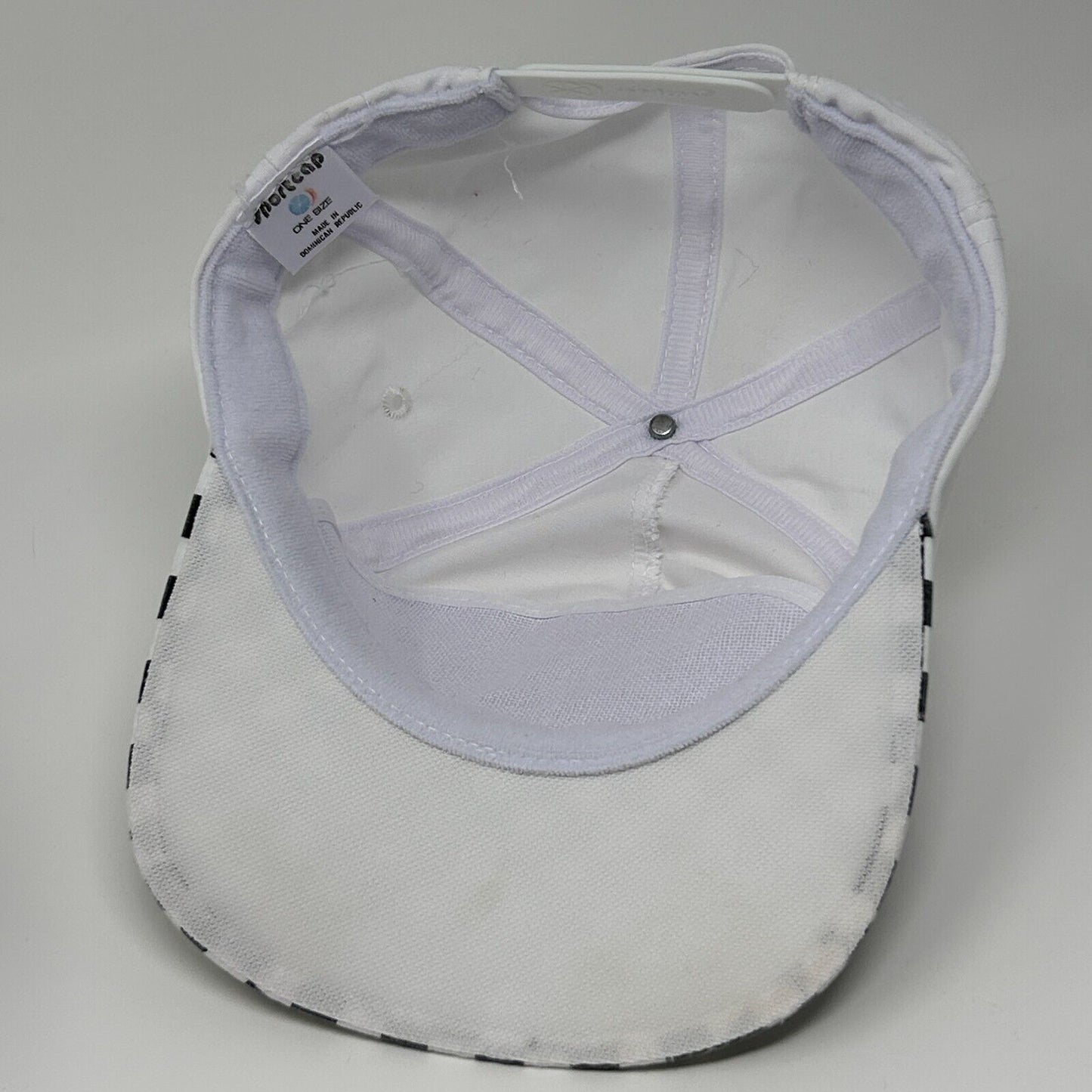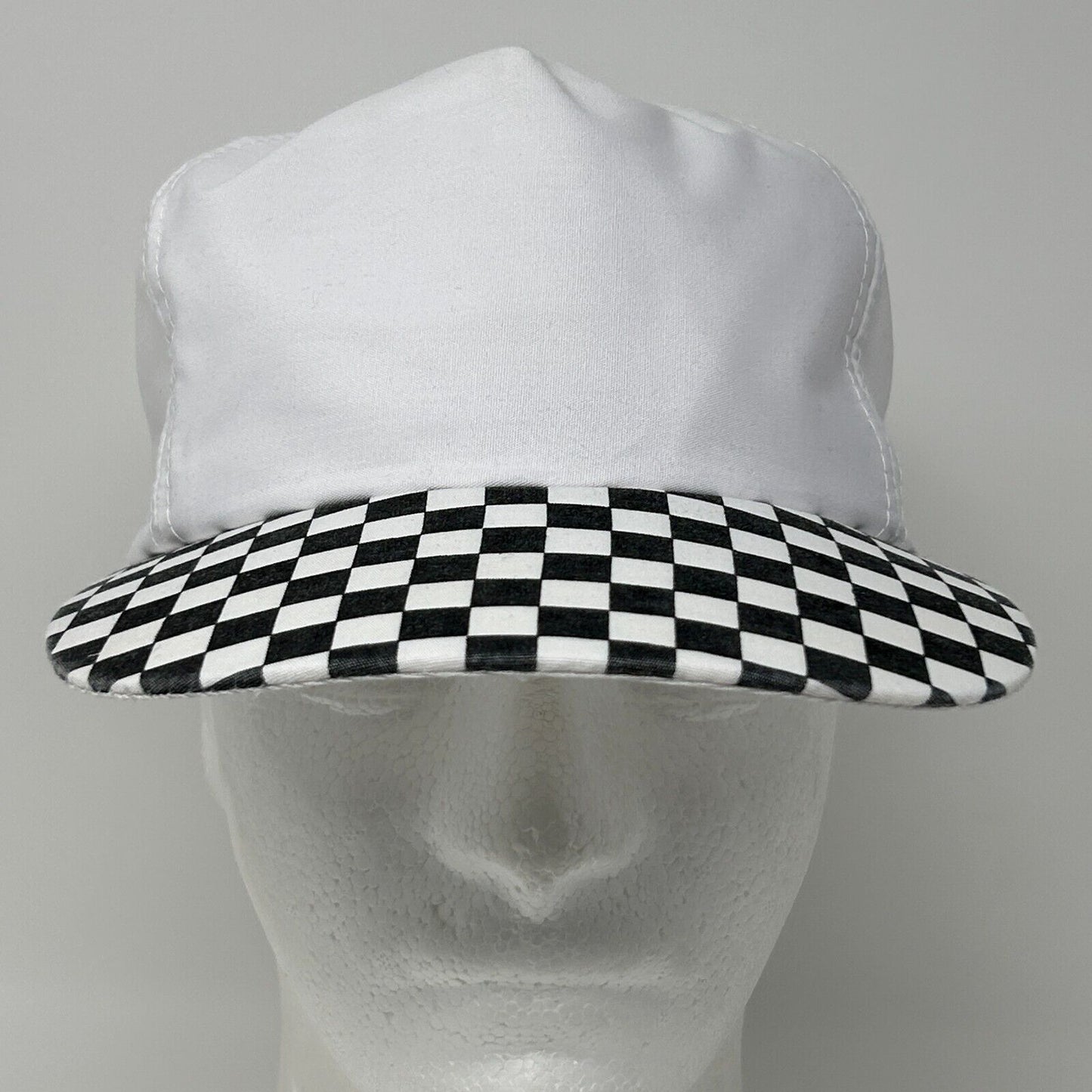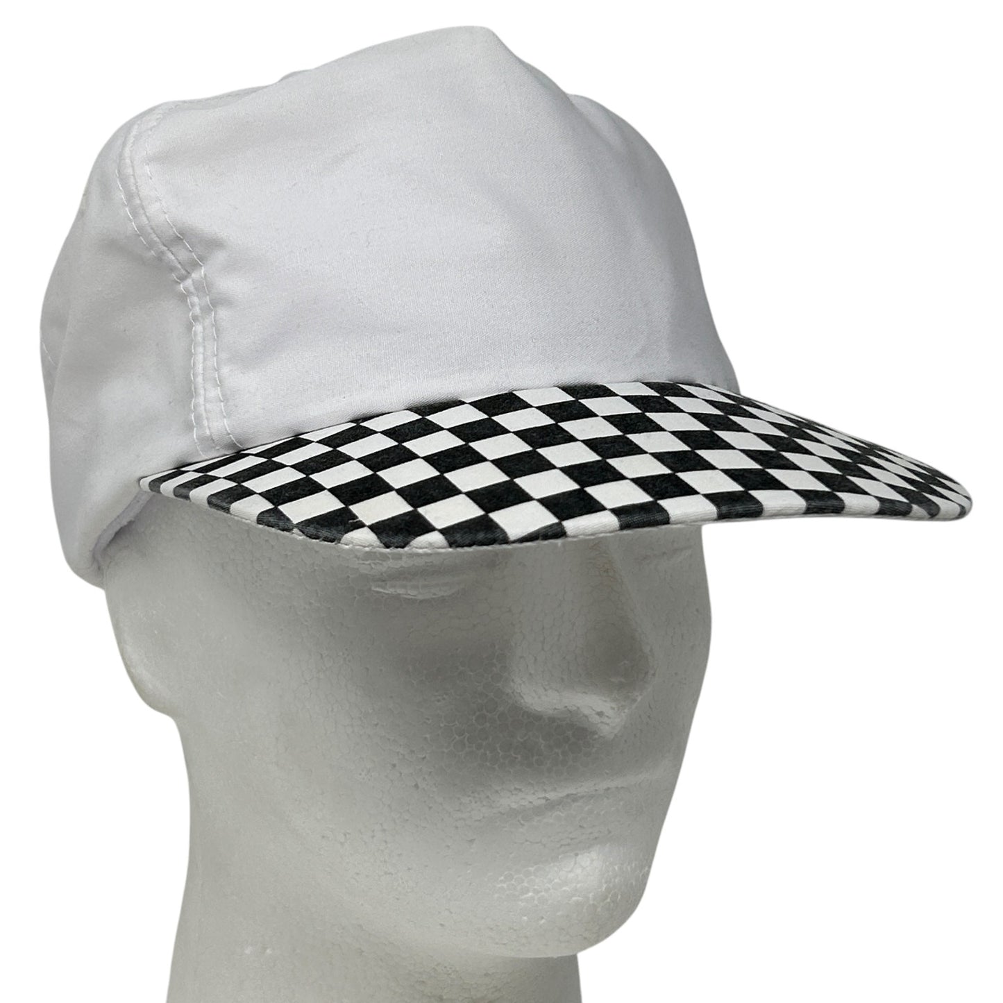 Vintage 80s Blank Solid Checkered Bill Hat Cap 5 Panel Sportcap Snapback White