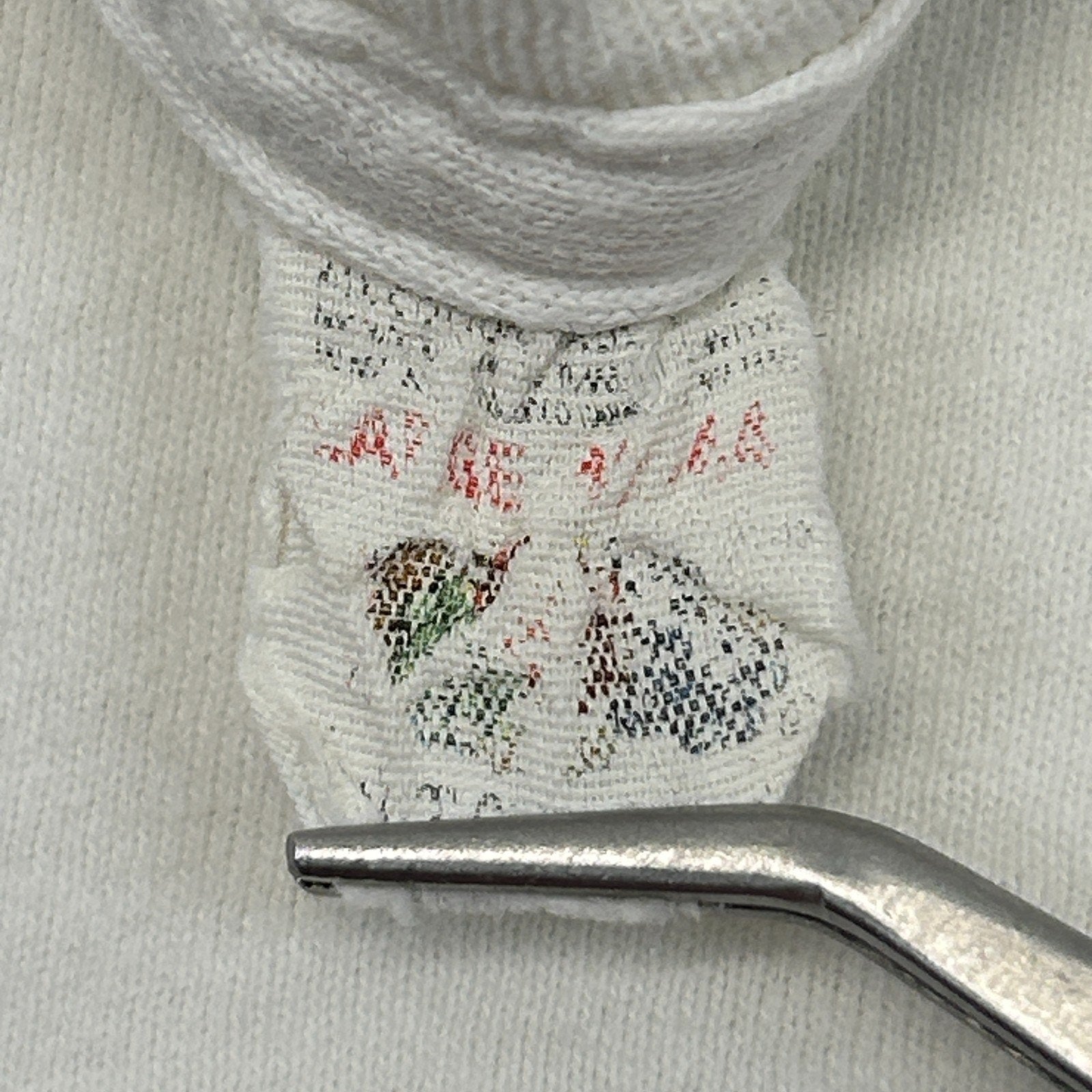 Has holes, spots, and a couple tiny pinholes on the back have been patched from the inside. The holes should not spread further and skin will not show through. No other flaws noticed. Tag is a Large but I feel it measures more similar to a modern Small. Check measurements to ensure fit. See photos.