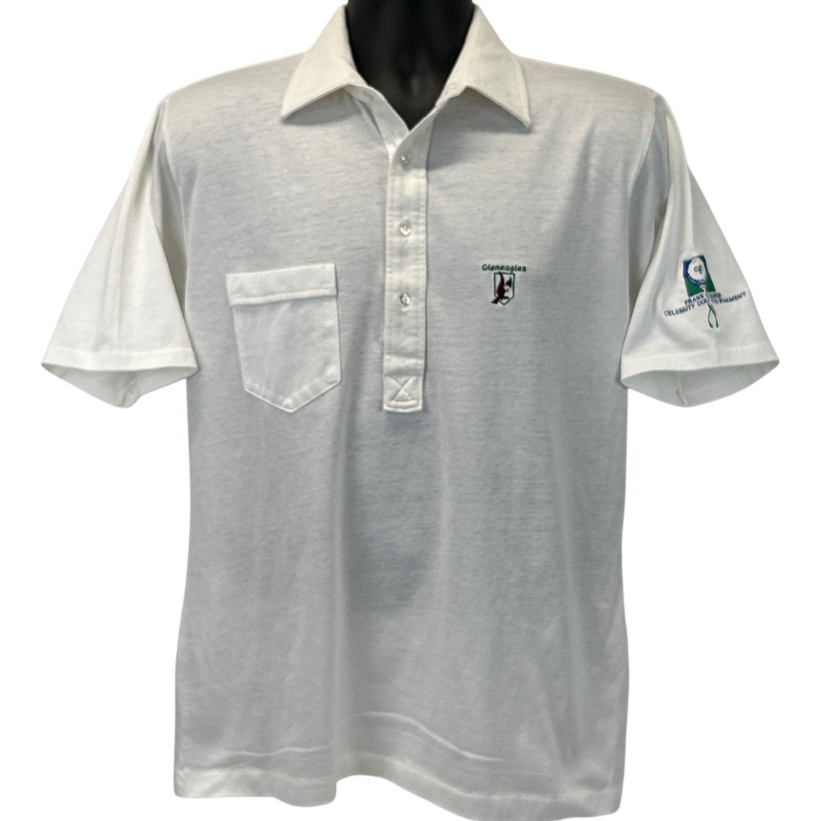 Vintage 80s Gleneagles CC Country Club Polo Shirt Plano Texas Frank Glieber Celebrity Golf Tournament Golfer Golfing White L Large Pickering Single Stitch Made In USA
