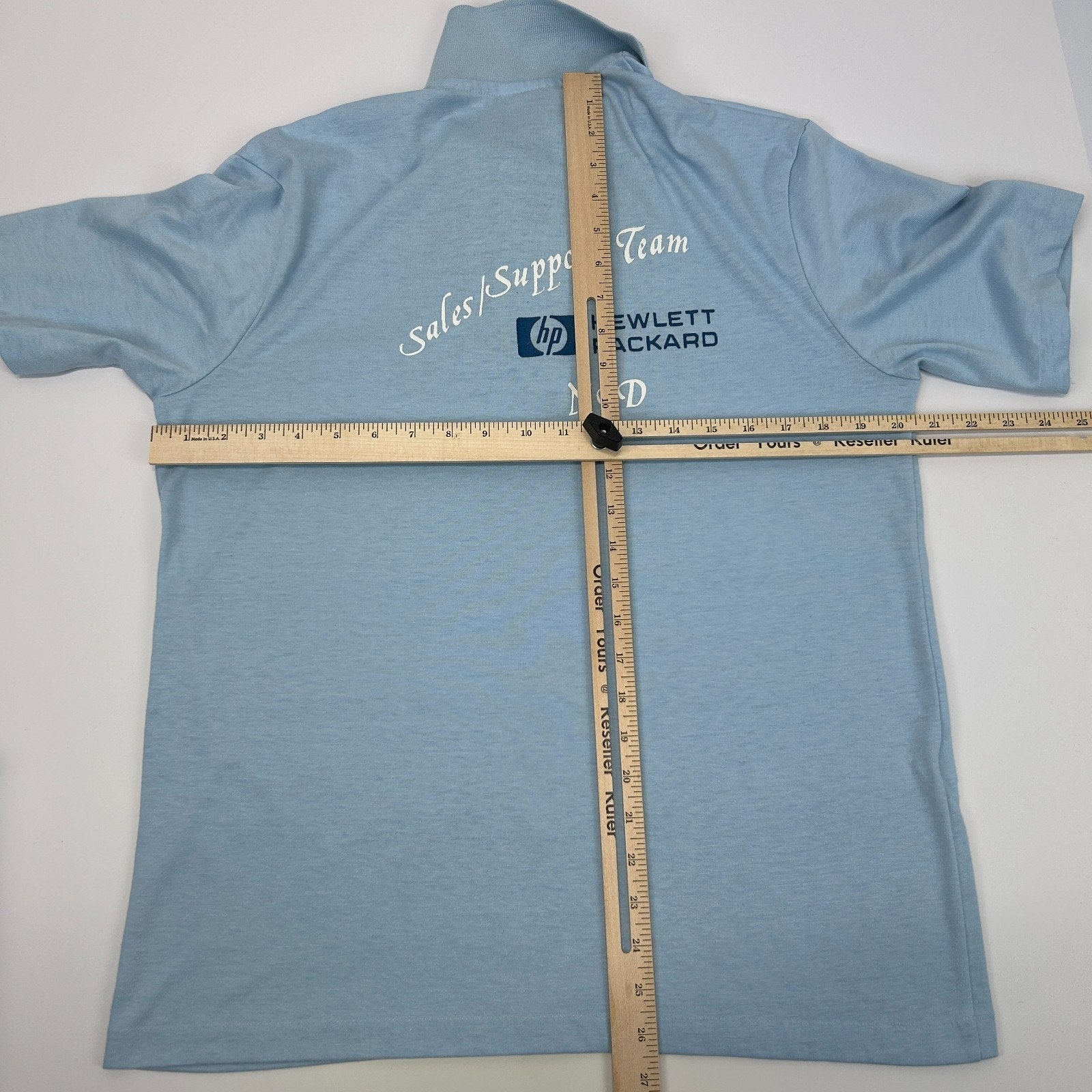 Vintage 80s Hewlett Packard HP Sales/Support Team Polo Shirt Computers Tech Technology Employee Blue L Large Hanes Single Stitch Made In USA
