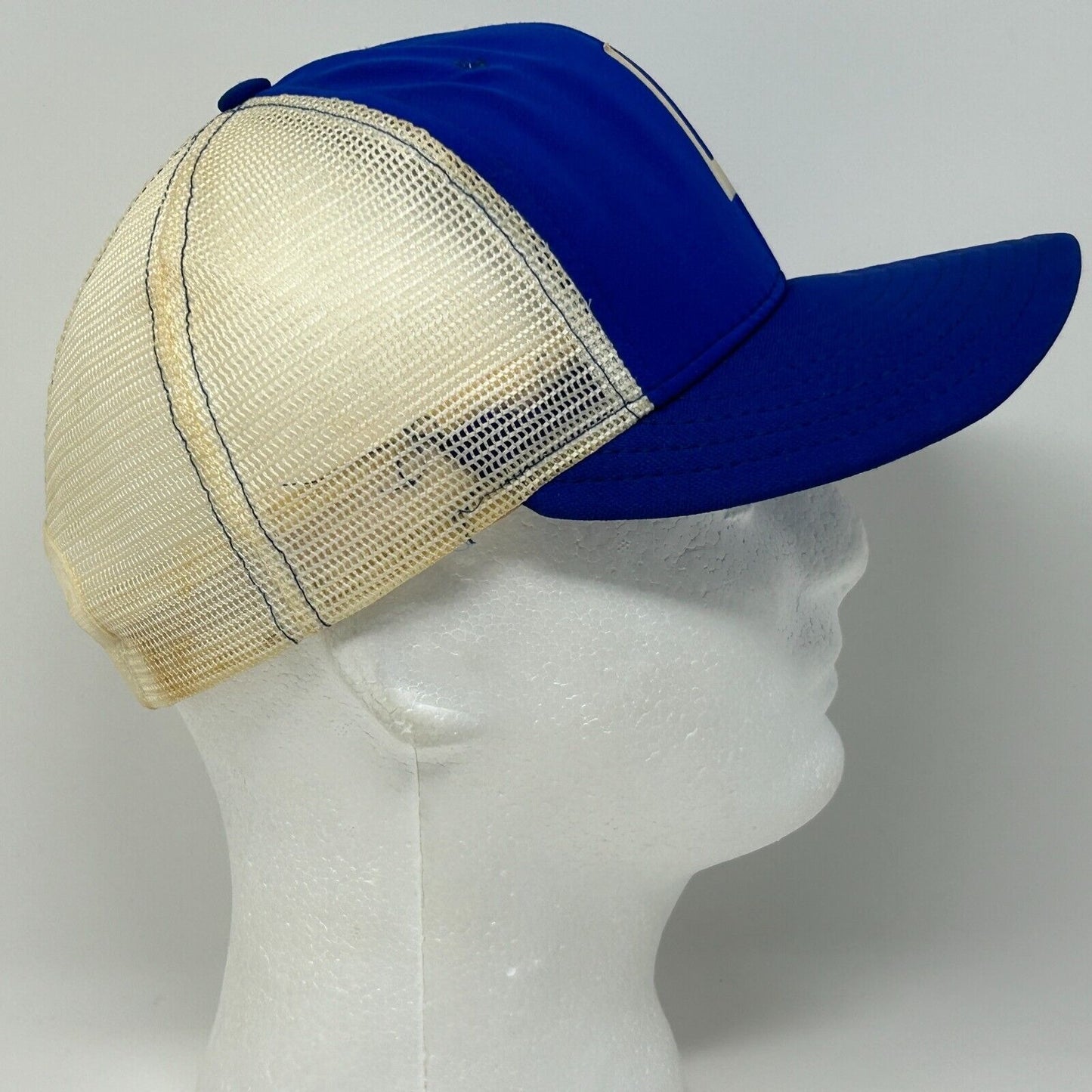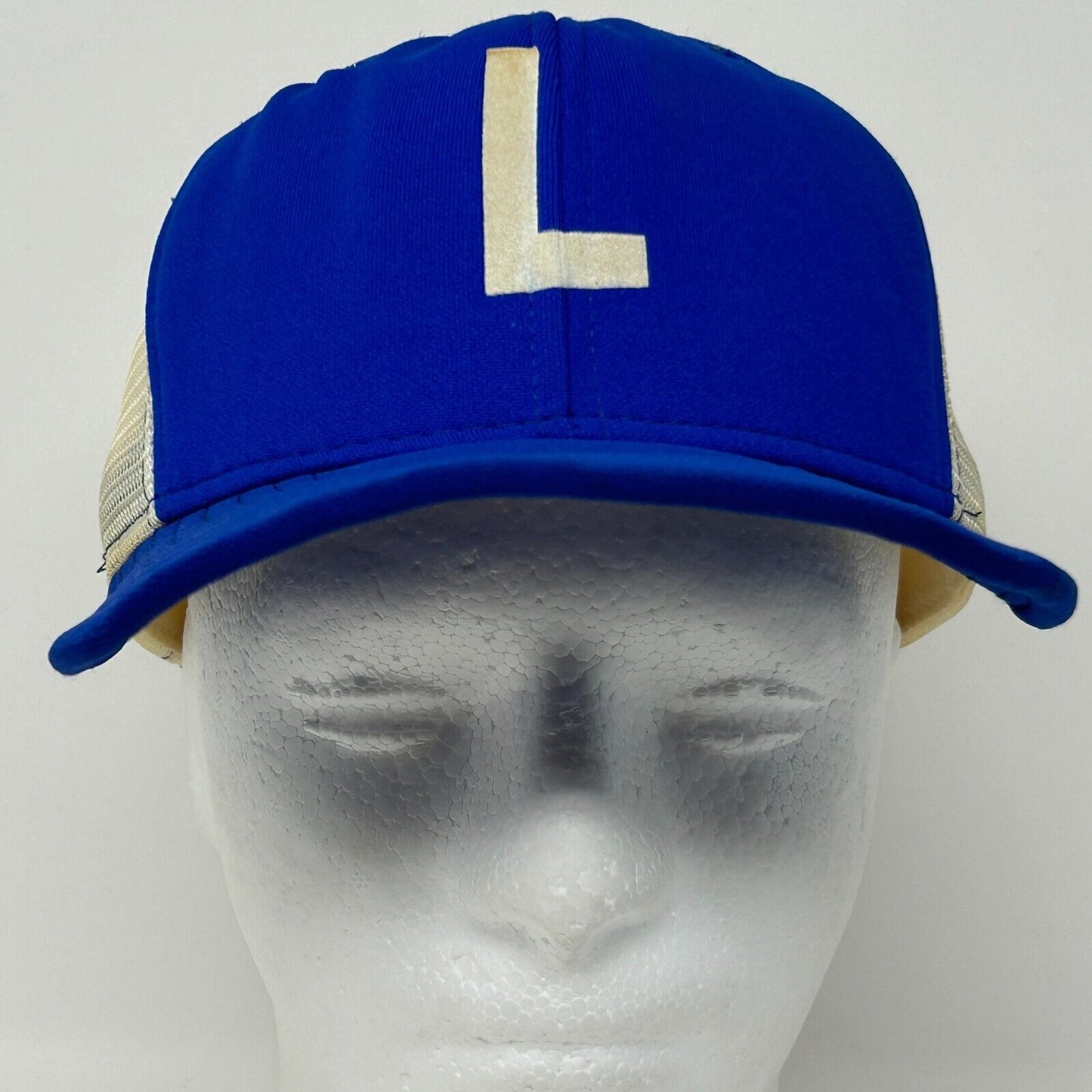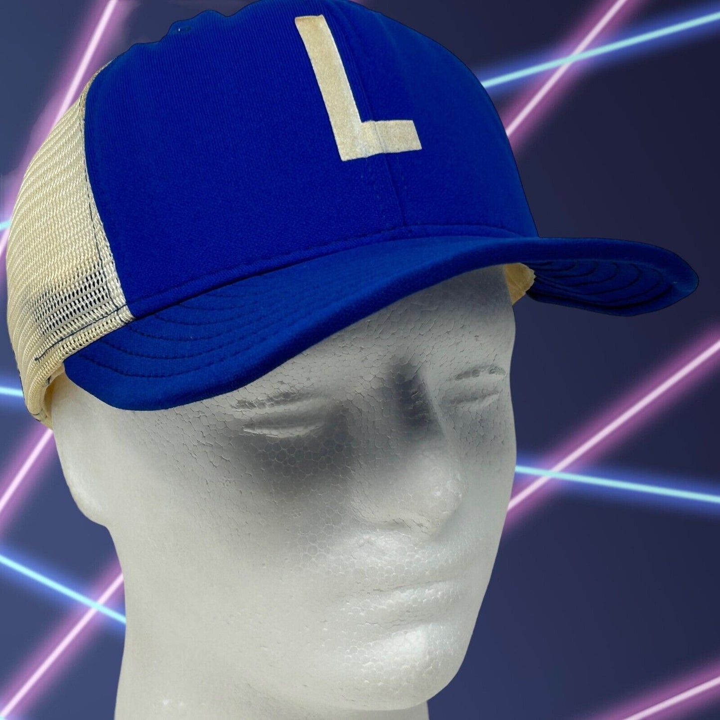 Gorra de béisbol estilo camionero con la letra L de los años 80, estilo vintage, de malla azul, con cierre trasero de seis paneles, de AJD Cap Co