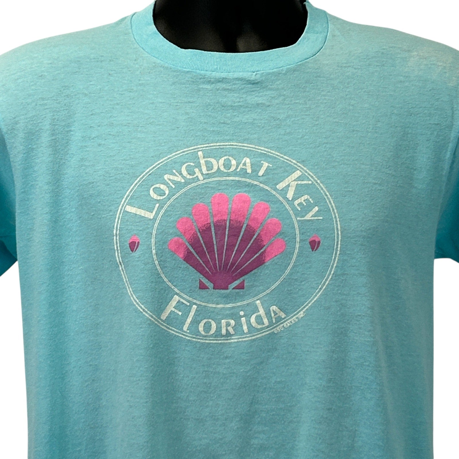 Vintage 80s Longboat Key Florida T Shirt Shell Seashell Travel Tourist Tourism Blue S Small Single Stitch Graphic Tee