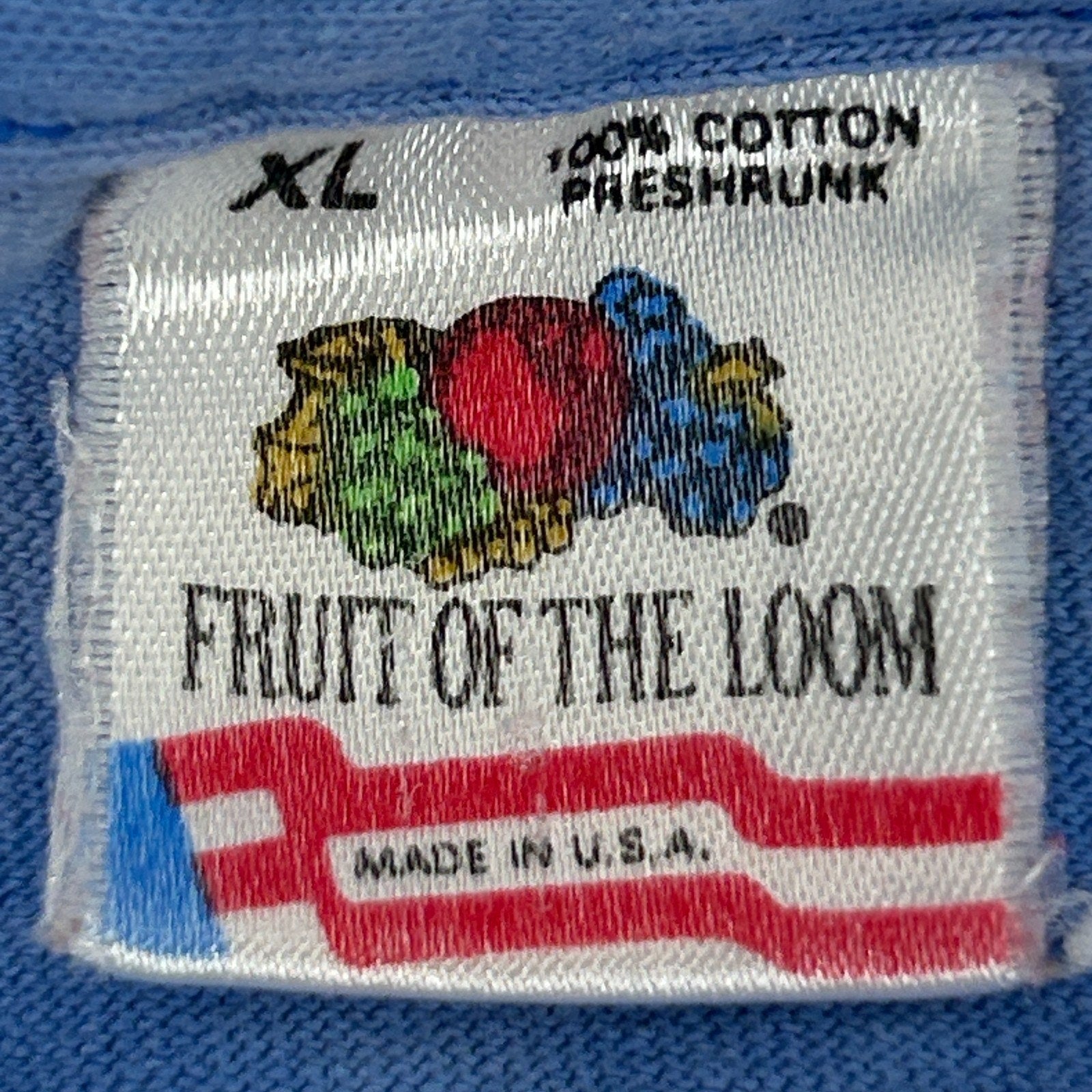 Vintage 90s Cheers Boston Bull & Finch Pub T Shirt TV Television Show Bar Tavern Beer Tie Dye Blue XL X-Large Fruit of the Loom Single Stitch Made In USA Graphic Tee