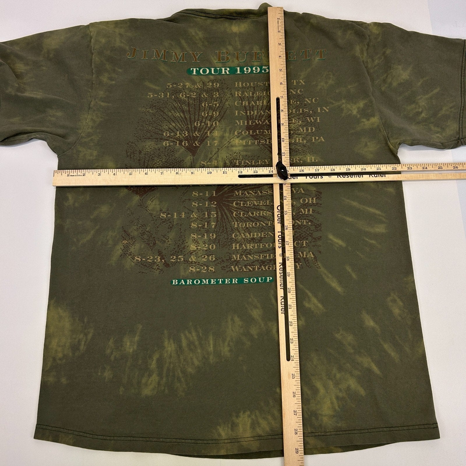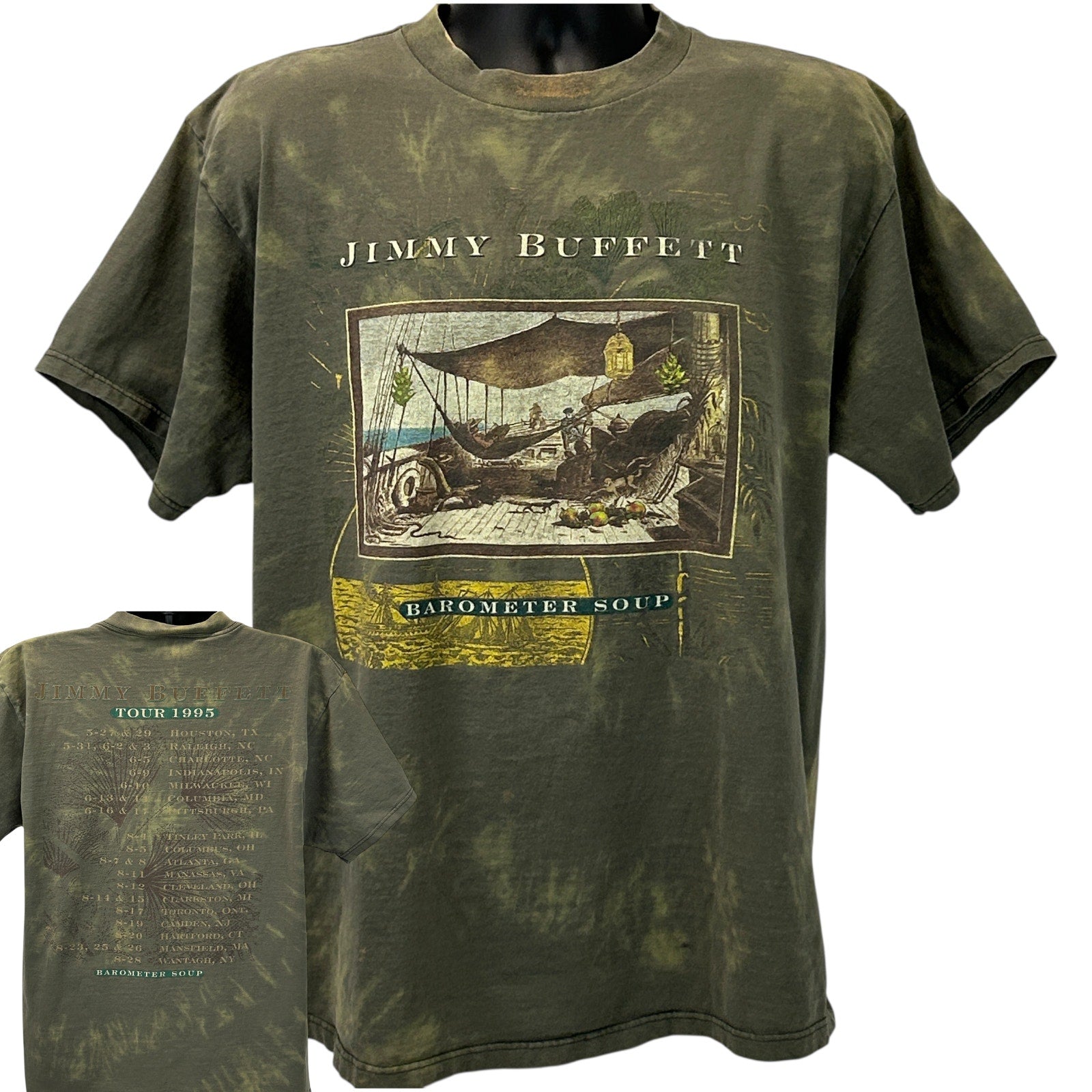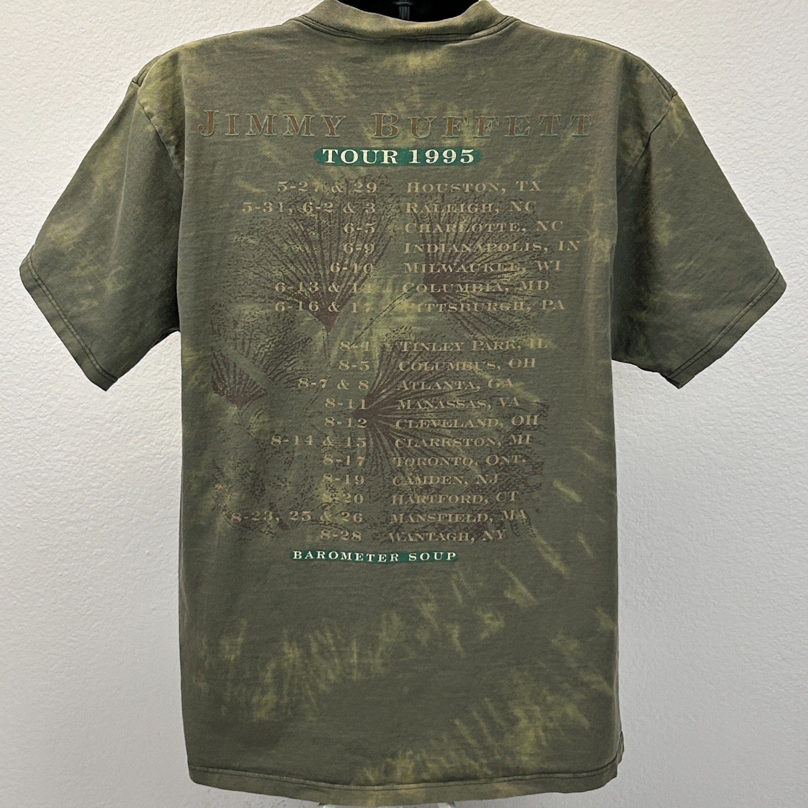 Vintage 90s Jimmy Buffett Barometer Soup Tour T Shirt 1995 Concert Parrotheads Tie Dye Green L Large Tultex Graphic Tee